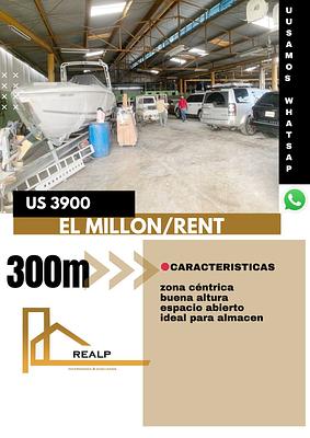 Excelente nave céntrica en el millon , espacio amplio , buena ubicación, doble altura , facilidad para carga y descarga, ideal para almacenamiento.