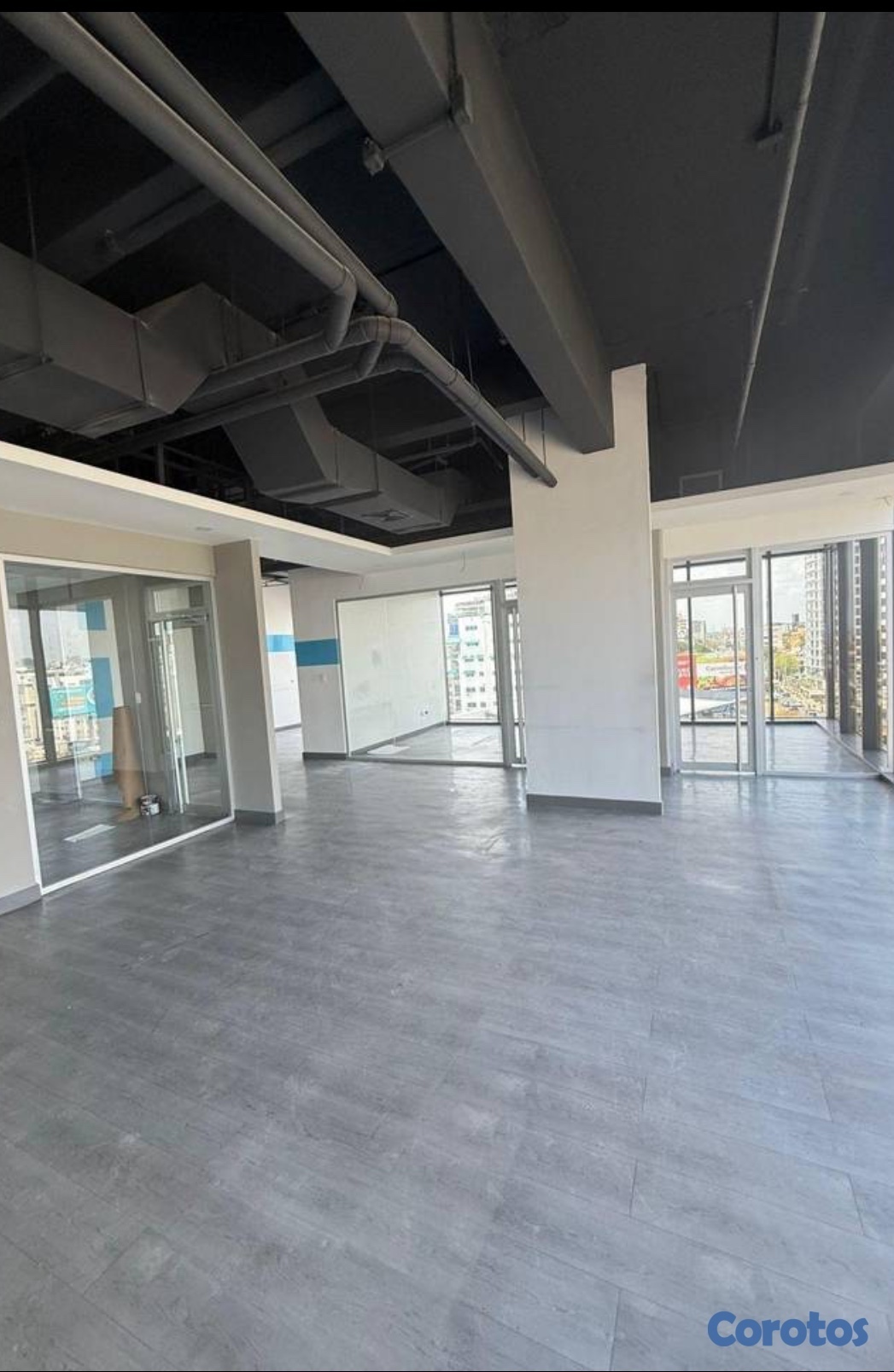 La oficina está lista para ocuparla, pisos, techo, aires acondionados, algunas oficinas.