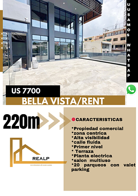 Excelente local en zona exclusiva de bella vista, primer nivel con terraza amplia , ideal para cafeterías, restaurantes de alta cocina, y demas negocios o empresas que deseen estar en este acogedor y moderno local.