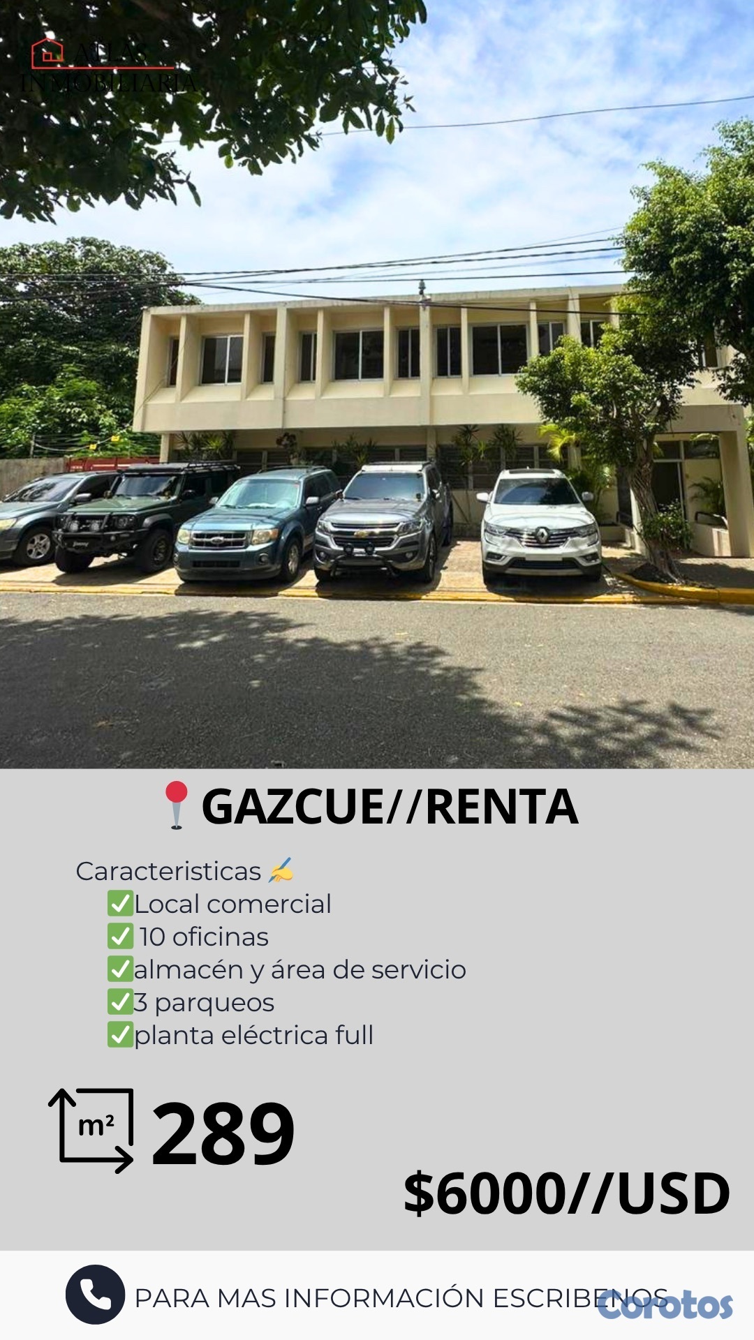 ▪️Oficina comercial de 289mts construccion con 1 niveles de oficinas.