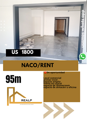 Local comercial , en primer nivel , espacio amplios con divisiones , para Shoowroom , alamacen , y/o oficinas , frente en cristal , zona comercial , salón multiuso, baño interno .