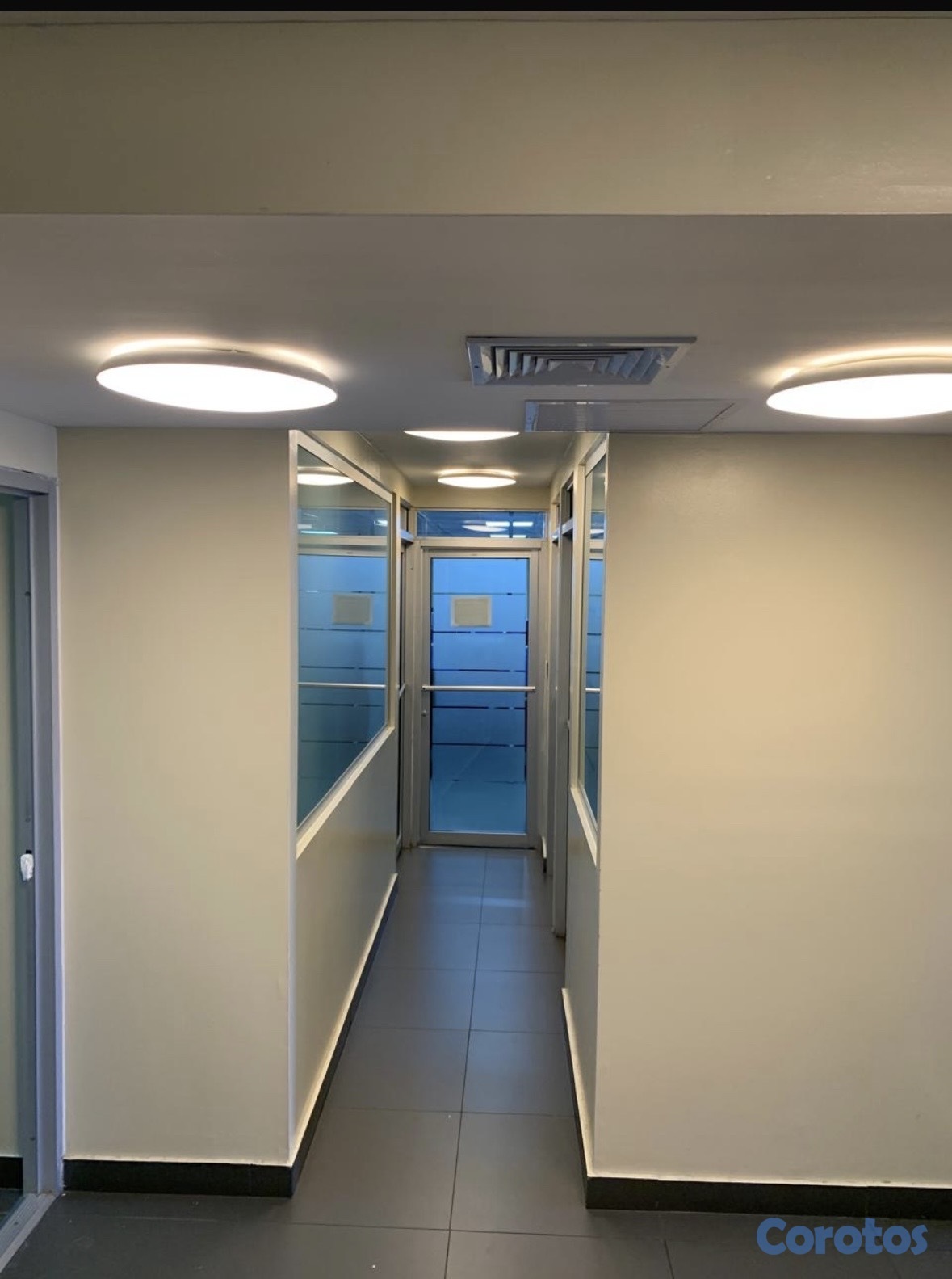 . Divisiones de sheet rock y cristales en despachos y pasillos.