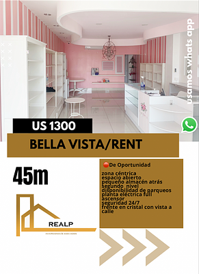 Excelente local céntrico en bella vista , espacio amplio abierto , con decoración moderna, frente hacia calle con buena visibilidad en zona de alto flujo comercial , pequeño espacio atrás de almacén o oficina y salón abierto adelante . Parqueos abiertos , planta full .