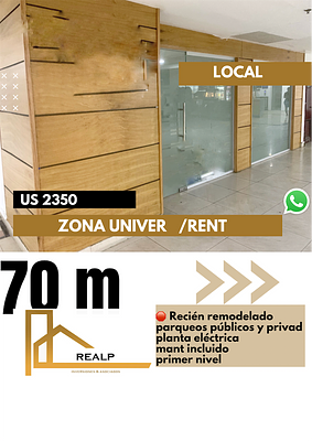 Local en mall , primer nivel , amplios parqueos , planta eléctrica, recién remodelado .