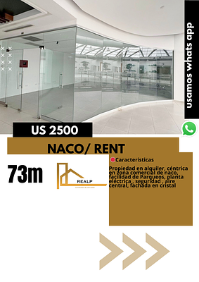 Propiedad en alquiler, céntrica en zona comercial de naco, facilidad de Parqueos, planta eléctrica , seguridad , aire central, fachada en cristal