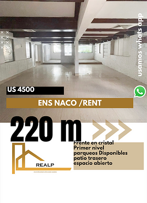 Excelente local comercial en zona céntrica de Naco , espacio abierto , con amplios baños , parqueos frontales, frente en cristal con puerta flotante , patio trasero , almacén y bodega , ideal para restaurantes , playgrounds, esteticas , salones, consultorios o demás tipos de negocios.