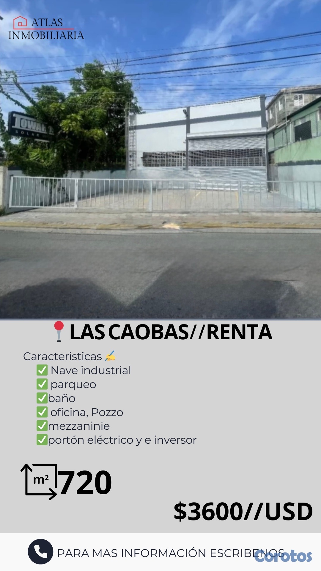 Esta propiedad industrial en Santo Domingo Oeste, sector Las Caobas, ofrece un espacio amplio y funcional. Con 600 metros cuadrados de construcción y 720 metros cuadrados de terreno, es ideal para operaciones industriales. Cuenta con 2 baños, 2 parqueos, oficina, pozo, mezzanine, baño común, portón eléctrico e inversor. Su ubicación estratégica facilita el acceso a vías principales, lo que la convierte en una excelente opción para empresas que buscan expandir sus operaciones en la zona. La infraestructura está diseñada para satisfacer las necesidades de cualquier negocio industrial, garantizando eficiencia y comodidad.