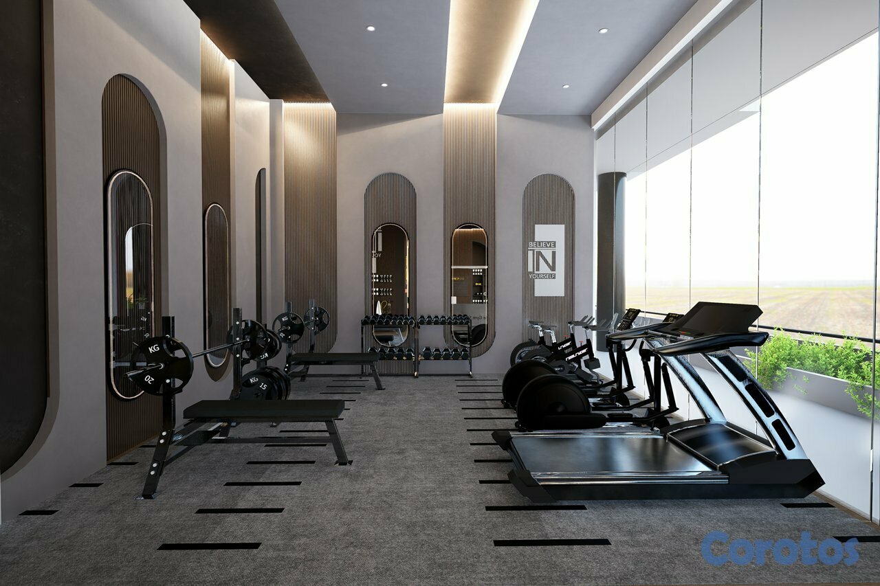 Amenidades de primera clase, incluyendo un gimnasio moderno, centro deportivo, área de juegos para niños, piscina, salones de conferencias y espacios de co-working.