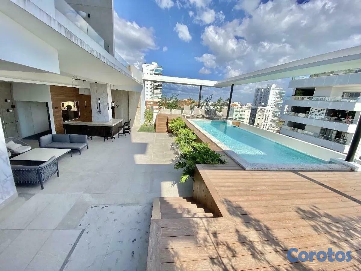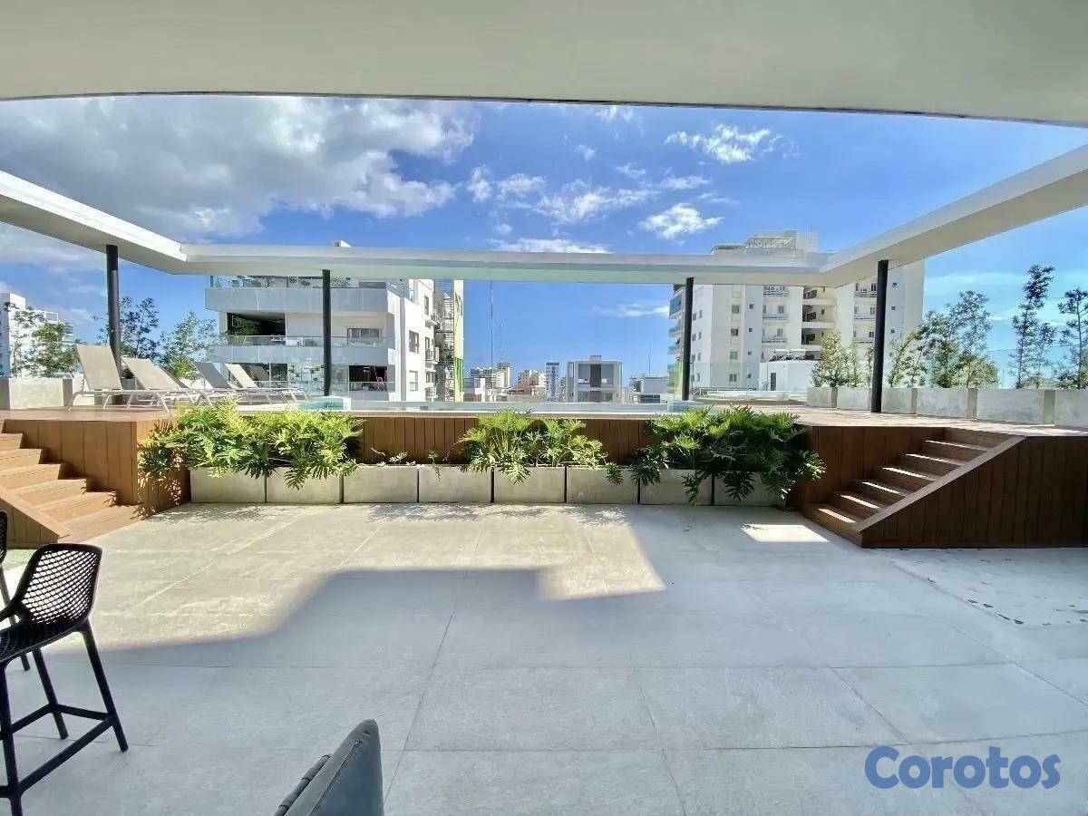 Apartamento en Venta AmuebladoNACOUSD 170,000.00Mantenimiento: RD$7,800.00CARACTERÍSTICAS DEL APARTAMENTO:• 90.21 m2 (73.21 m2 netos + 17 m2 de parqueo)• Piso 7• 1 habitación• 1 vestidor• 1.5 baños• 1 parqueo techado• Balcón• Sala/Comedor• Cocina con desayunador• Área de lavado• Calentador• A/CCARACTERÍSTICAS DEL EDIFICIO:• Año de construcción: 2020• Airbnb friendly• Lobby• Intercom• Área social con bar• Piscina• Gimnasio• Área infantil• Cisterna• Pozo• Gas común• Planta eléctrica full• Portón eléctrico• Seguridad• Cámaras de vigilancia• Sistema contra incendios