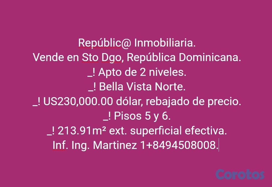 Vende en Santo Domingo, República Dominicana.