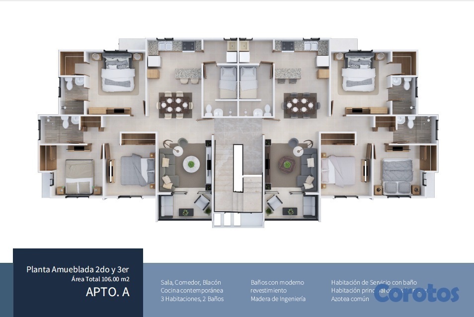 Apto en el tercer Nivel de 106 Mts2 (Tipo A)