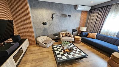 Exclusiva torre en calle residencial del sector serrallés. Apartamento con finas terminaciones en mármol y madera preciosa con la tercera habitación convertida en estudio. Mejoras decorativas realizadas al apartamento. Muy poco uso. Todo en excelentes condiciones. Vista despejada. El precio incluye 4 aires, nevera, estufa, extractor, lavadora y secadora.