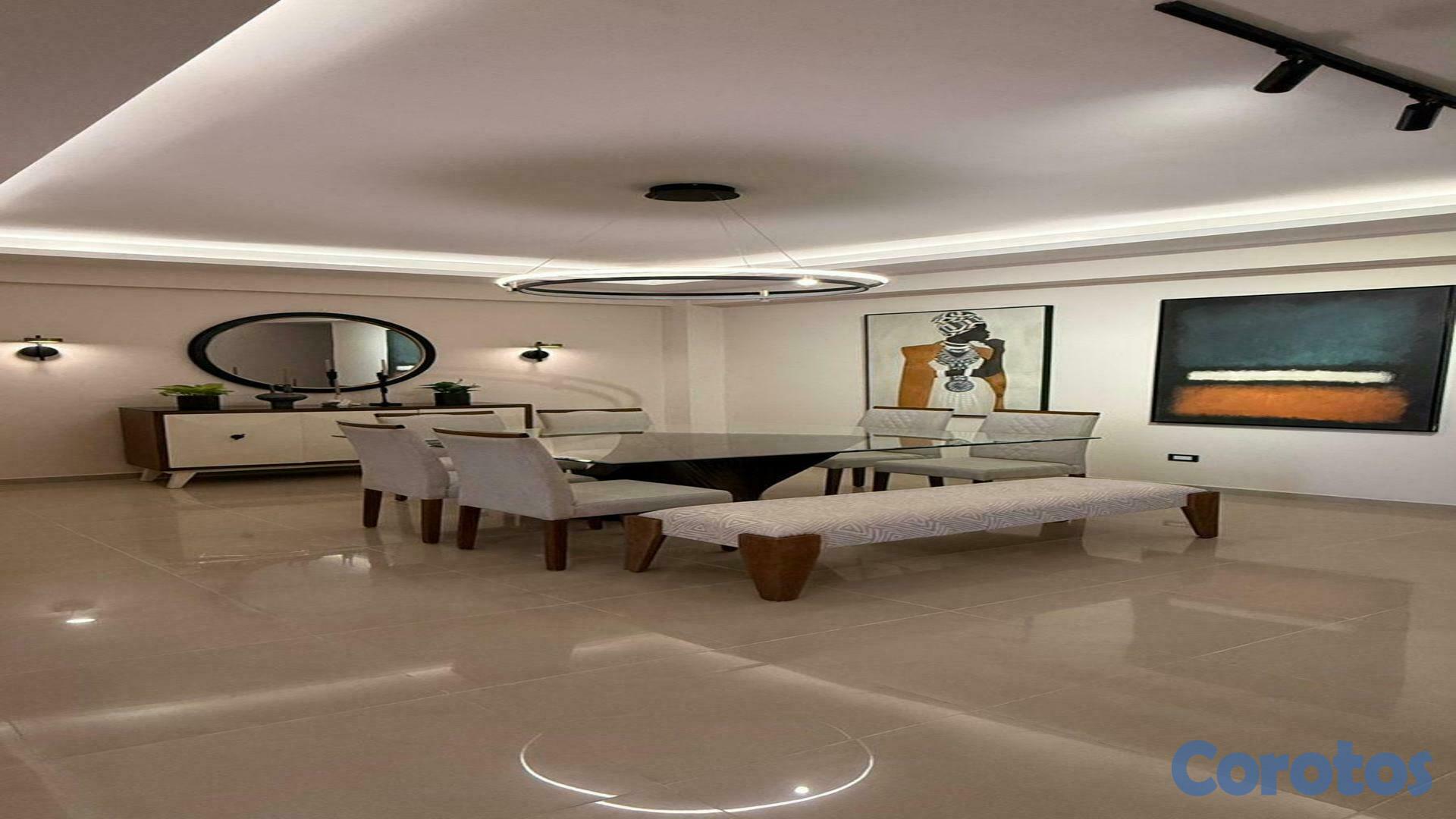 Los Cacicazgos – Santo DomingoApartamento en VentaPrecio: US$385,000Mantenimiento: RD$10,000 aprox.Características del apartamento:203 m²Piso 52 parqueos paralelos techadosBalcón2 salasComedor1/2 baño de visitasCocina cerradaHabitación de servicio con bañoÁrea de lavado3 habitaciones (principal con baño y walking closet)Baño comúnOpción de 2 habitaciones + estudioAmenidades de la torre:Amplio lobbySeguridad 24/72 ascensoresPlanta eléctrica full