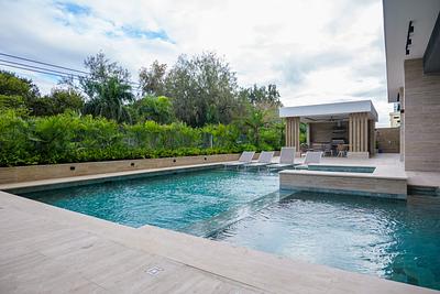 Detalles de los Apartamentos: 358 y 360m2 neto, mas 50m2 para 4 parqueos, 6.50m2 de locker, total 416.50m2 total, 3 Habitaciones con baño c/u. 1/2 baño de visita. 2 Salas, Estudio, Terraza, Comedor, 2 Cocinas, Área de lavado, Cuarto de Servicio, Comodidades y Terminaciones: Amplio Lobby de Lujo, Piscina, Terraza, Ebanistería en madera preciosa, Pisos en Mármol, Techo en Yeso y Cornisas, Preinstalación de aires acondicionados, 4 Parqueos Techados, Planta Eléctrica Full, 3 Ascensores de Última Generación, Gas Común, Portones eléctricos a Control Remoto, Pozo Tubular, Cisterna de Agua, Baño para vigilantes y choferes, Diseño estructural antisísmico.
