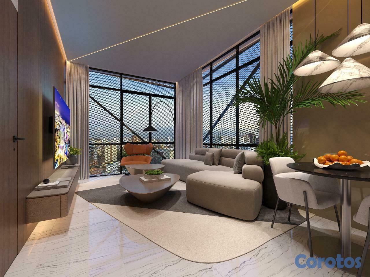 Apartamentos estudios de 28.5 metros, vendidos. Sin parqueo. 1 habitación, 1 baño. US$106,115.90