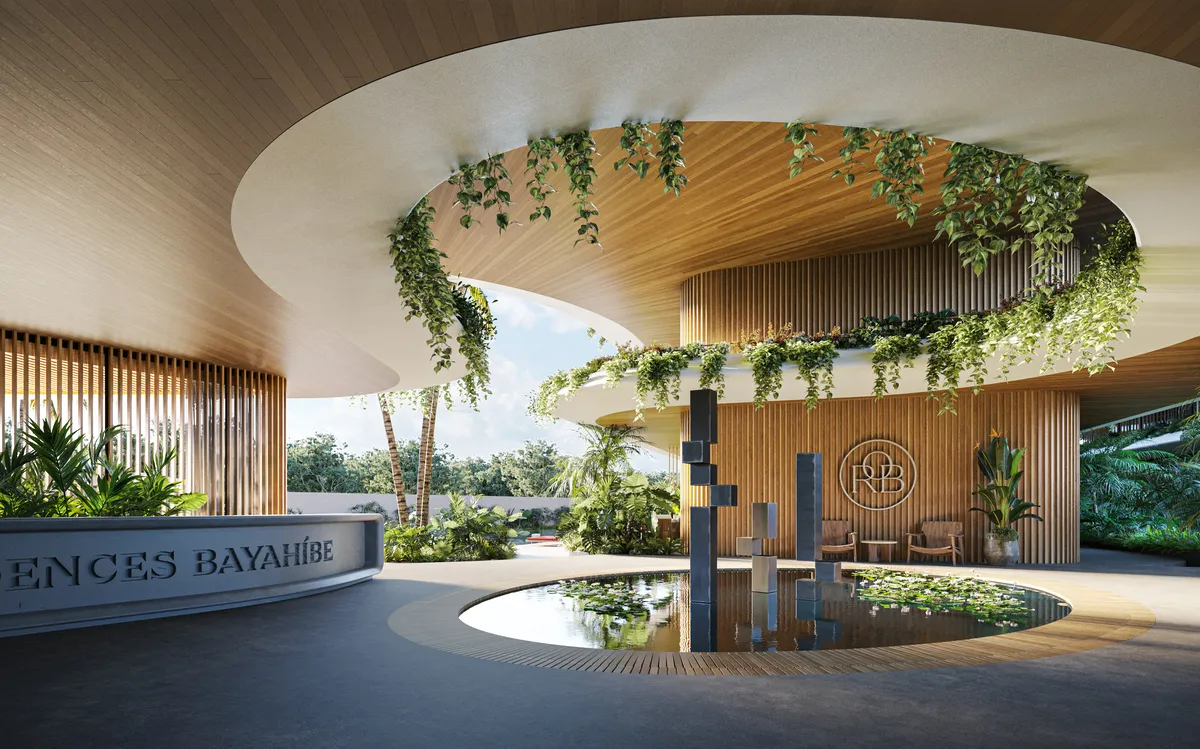 Ocean Residences, proyecto residencial en construcción, ubicado a solo 800 metros de la playa, presenta una fusión armoniosa entre diseño arquitectónico moderno y naturaleza tropical. La fachada ondulada imita el flujo natural del océano, integrándose perfectamente con el entorno de palmeras y vegetación exuberante.