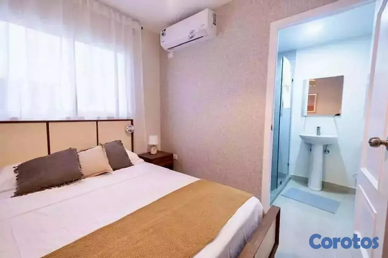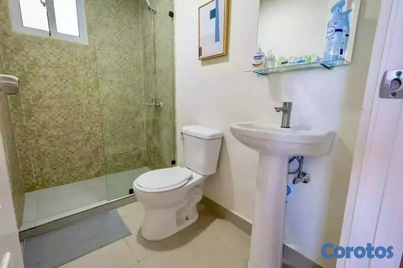 El residencial cuenta con seguridad 24/7, ascensor, piscina, jardín, gas común, portón eléctrico, estacionamiento paralelo, área social y políticas que permiten mascotas y alquileres a corto plazo, ideal para inversión en renta vacacional.