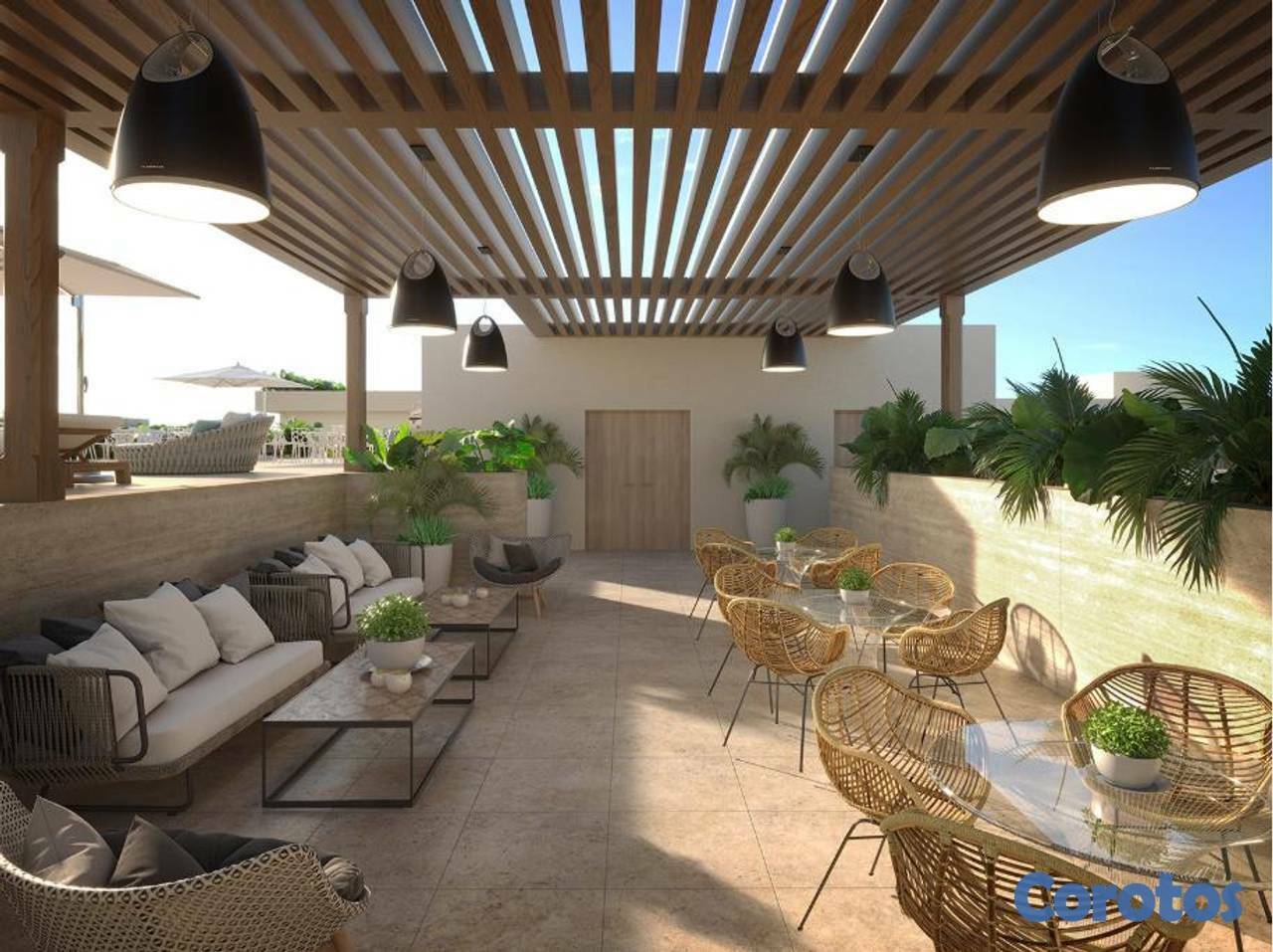 Piscina y salón social ubicados en la azotea con vistas panorámicas