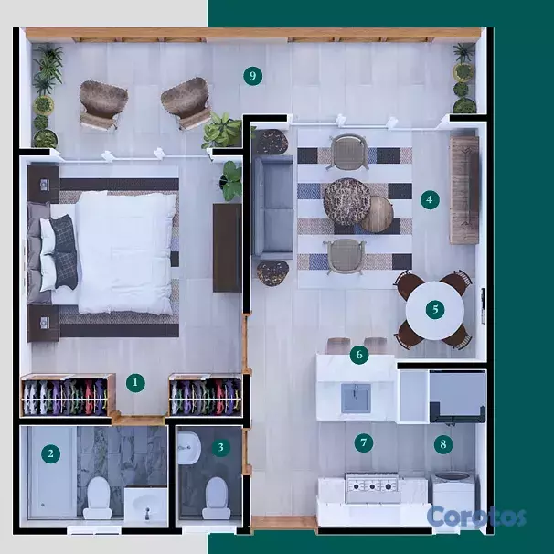 1 Habitación con closet y 1 baño