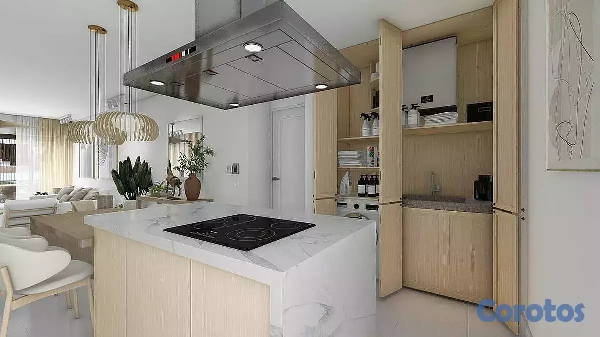 Las terminaciones son de primera calidad: topes de cocina y baños en cuarzo, cocinas y puertas en melamina, pisos en porcelanato, ventanas anti-ruido, puertas principales con cerradura inteligente y pisos de áreas sociales en coralina.