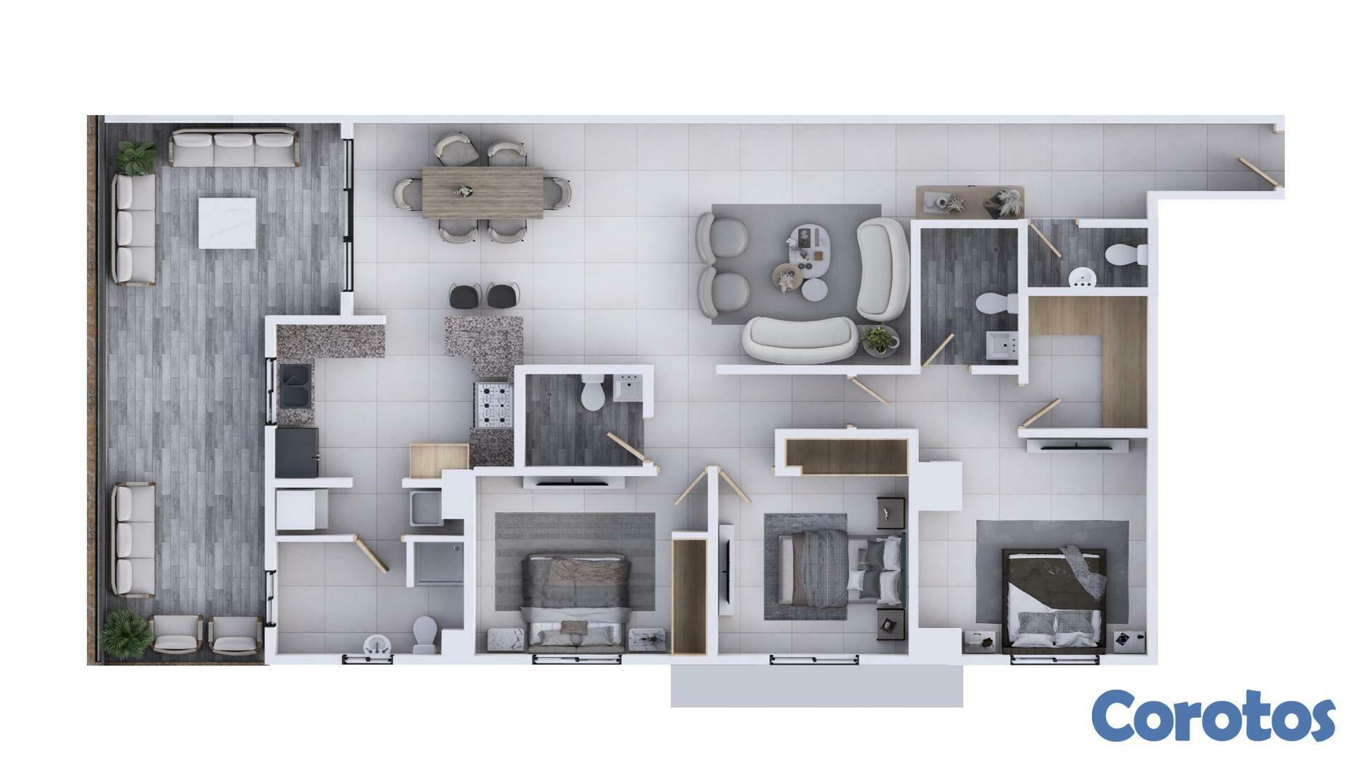 Proyecto Residencial en Los Prados – Entrega Agosto 2026 Disfruta de un proyecto con terminación de primera, ideal para quienes buscan confort,estilo y una ubicación estratégica en el corazón de Los Prados. Forma de Pago: • Reserva: US$ 5,000.00 • 10%: A la firma del contrato de promesa de venta. • 25%: Dividido en cuotas durante la construcción. • 65%: Contra entrega, mediante pago directo o financiamiento bancario. Distribuciones y Precios: 81.13 m² + 4.10 m² de locker – 2 Habitaciones, 2 Baños – US$ 173,000121.17 m² – + 17.82 Mts de terraza- 2 Habitaciones, 2 Baños – US$ 248,000180.22 m² + 38.93 m² de terraza – 3 Habitaciones, 2 Baños – US$ 363,600 Características Generales: • Habitación principal con baño y walk-in closet. • Baño de visitas (en algunas unidades). • Recibidor (en algunas unidades). • Sala y comedor integrados. • Moderna cocina. • Área de lavado. • Cuarto de servicio con baño. • 1 y 2 parqueos por unidad. Amenidades y Facilidades: • Área social con barbacoa y kitchenette. • Planta eléctrica full para mayor tranquilidad. • Ascensor de última generación. • Sistema de seguridad con cámaras de vigilancia y videoportero. • Control de acceso mediante token. • Pozo tubular, asegurando suministro de agua constante. • Gas común para mayor eficiencia. • Baño para conserje. • Preinstalación de A/A en todas las áreas. • Sistema contra incendios para mayor seguridad. ¡Agenda tu cita hoy y separa el tuyo con: ProCimax Realty! [hidden information]