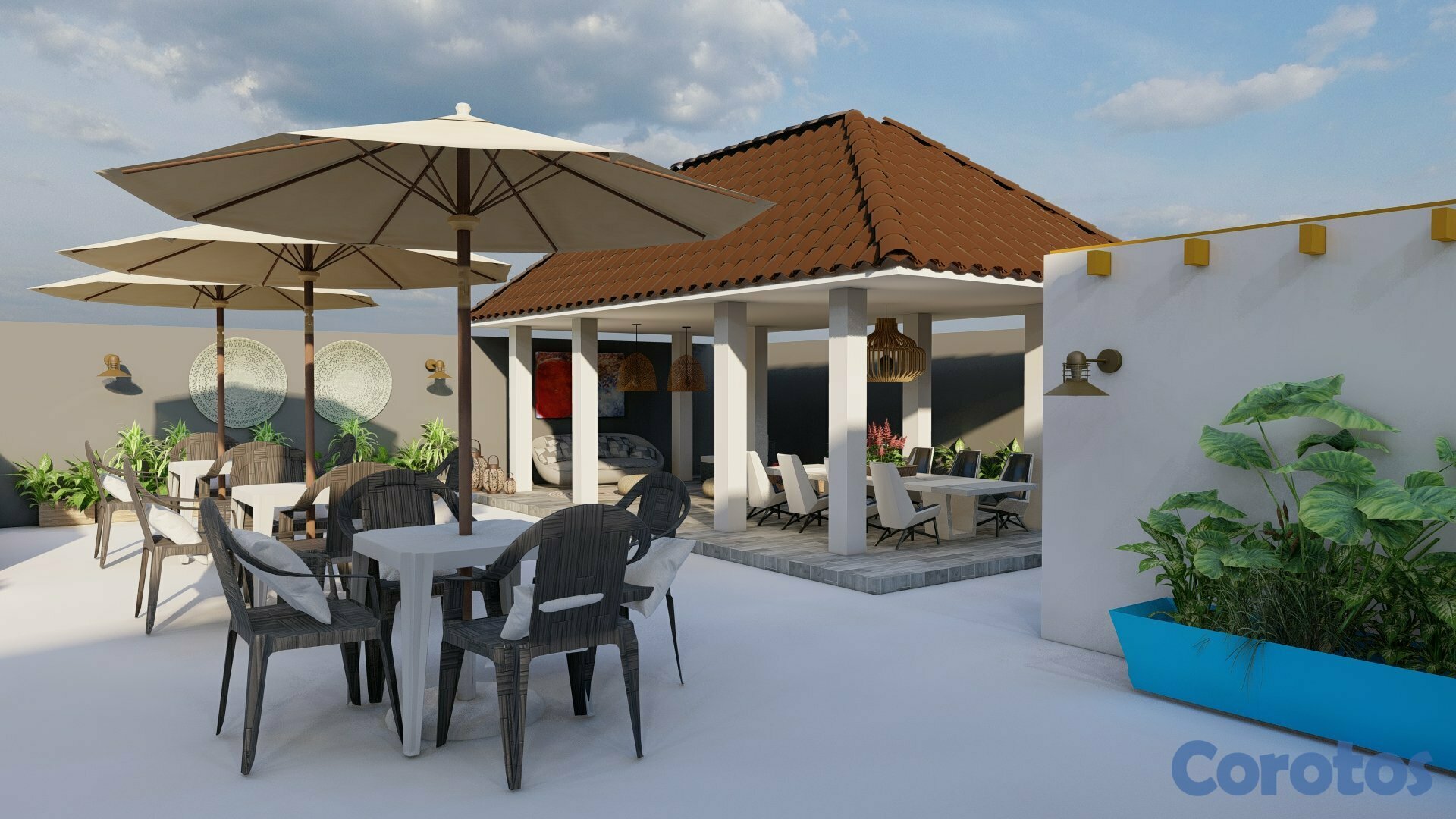 Diseño arquitectónico fusionando el Caribe y el Mediterráneo, espacios pensados para el bienestar y la convivencia.