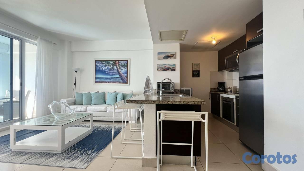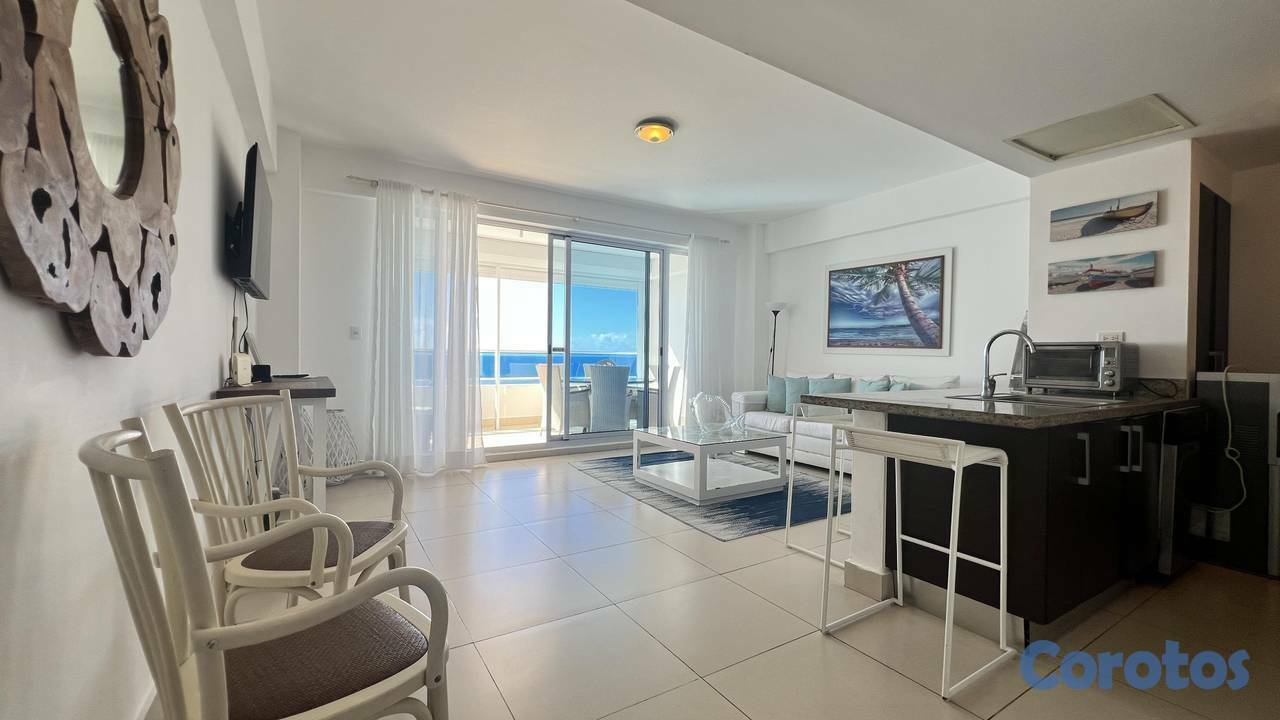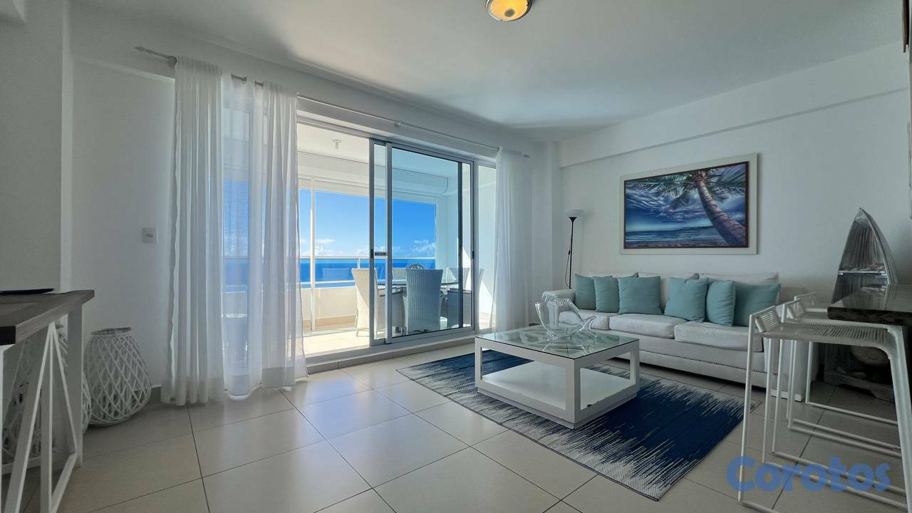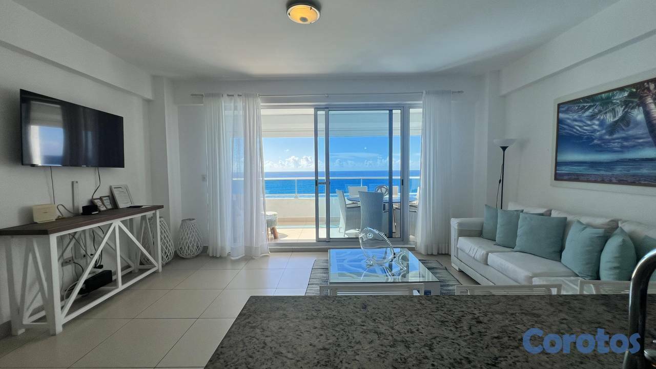 ¡Vida frente al mar.…! Concierto de ricas melodías del va y ven de las olas, un despertar hermoso con bellos atardeceres que le darán a tu vida un sin número de arcoíris. Gozando de paz y placer en un lugar único y exclusivo cómo lo es este opulento apartamento en LAS OLAS JUAN DOLIO, con una vista excepcional que te llevará al punto justo que se une el horizonte. Primera línea de playa Juan Dolió