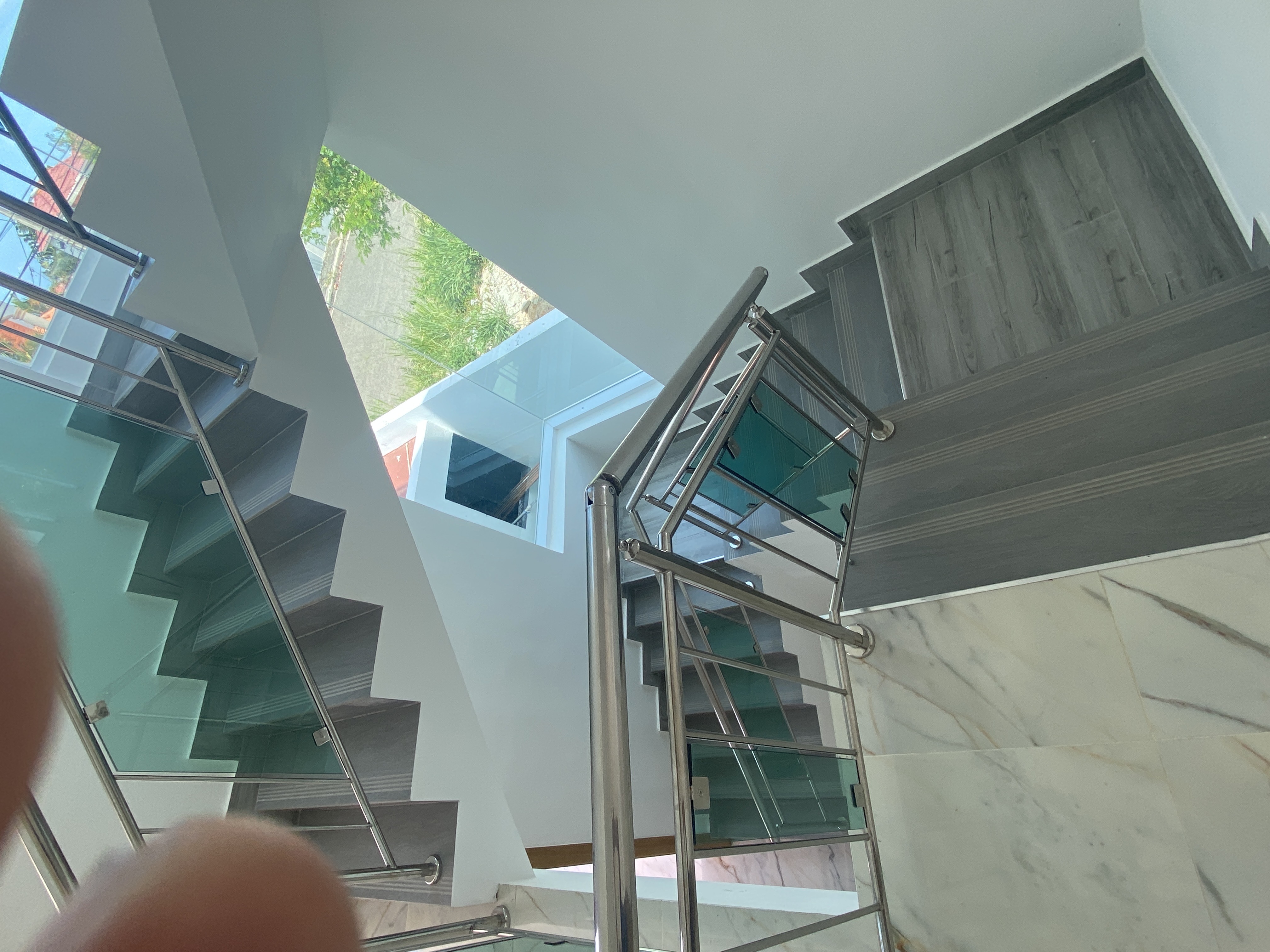 Escaleras en cristal hasta el techo .