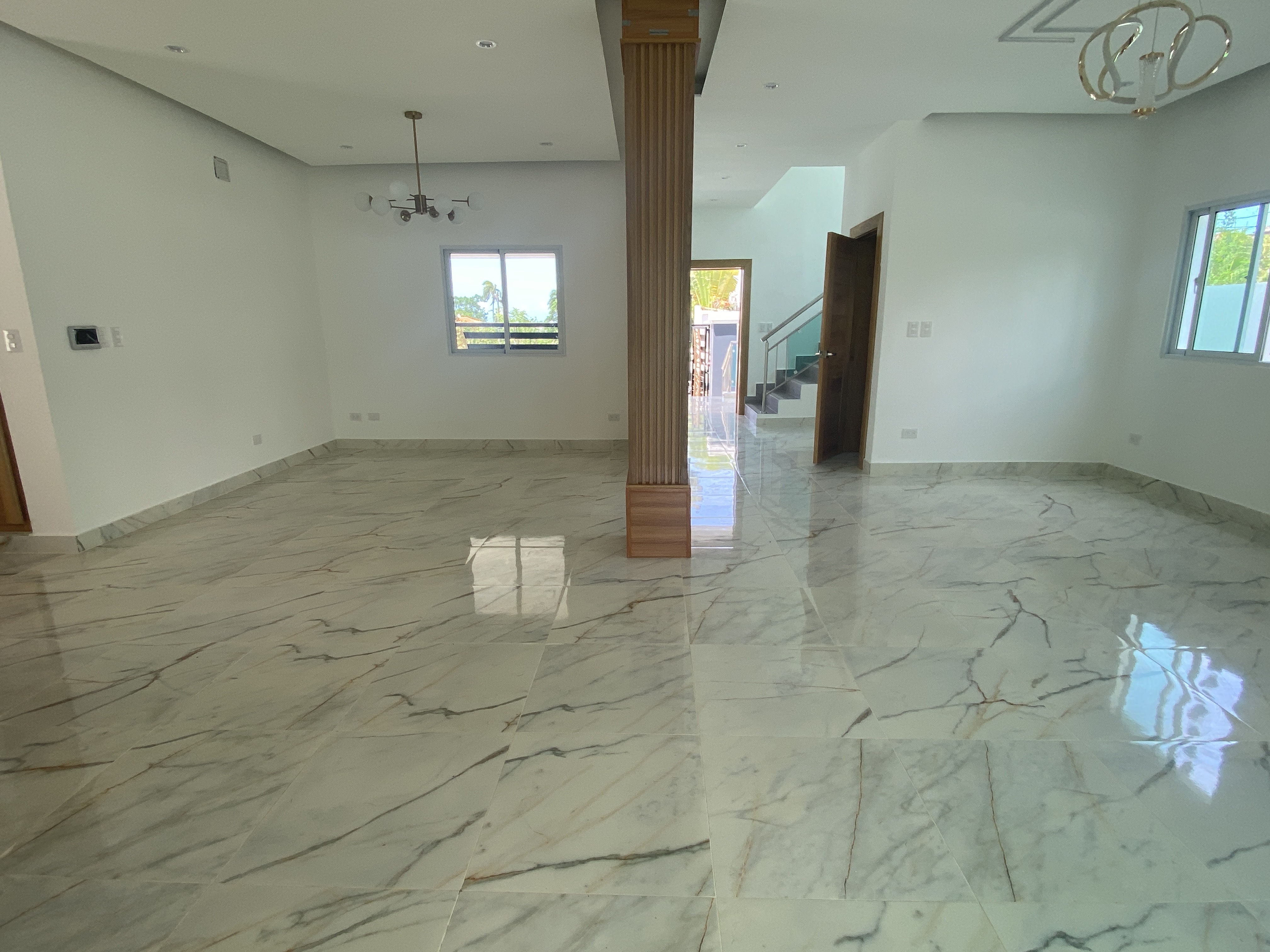 - Sala,Comedor,Cocina, Habitación de servicio con su baño ,Terraza, Area de lavado cerrada ,1/2 baño,Jardín amplio , Marquesina Doble.