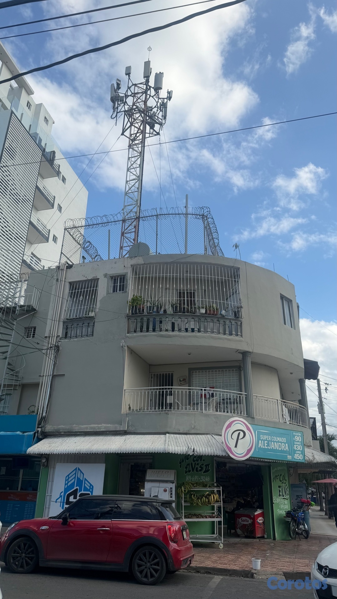 Edificio 3 Niveles Comercial y Residencial de uso mixto, Primer Piso; 4 locales comerciales(Colmado, Banca de Lotería, Oficina y Restaurante) 8 Apartamentos de uso Residencial de uno, dos y tres habitaciones, Espacio Aéreo Rentado la Compañía Telefonica CLARO