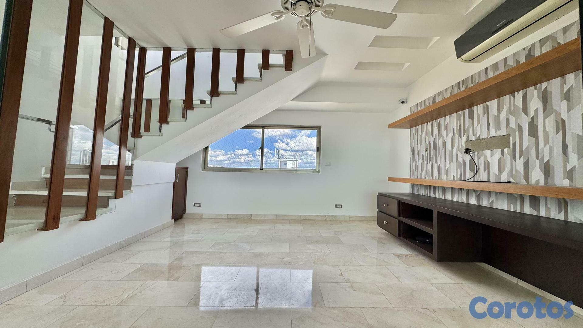 Penthouse en VentaEVARISTO MORALESUSD 555,000.00Mantenimiento: RD$20,500.00CARACTERÍSTICAS DEL PENTHOUSE:- 326 m2- ⁠Pisos 10 y 11 con vista al mar- ⁠3 parqueos techados (2 lineales y 1 independiente)- ⁠Calentador- ⁠Shutters- ⁠Mallas- ⁠A/C- ⁠Paneles de solares- ⁠Techos en sheetrock- Sistema de sonido- ⁠Pisos en mármolPISO 10:- 3 habitaciones- ⁠1 vestidor + 2 clósets- ⁠3.5 baños- ⁠Recibidor (Ascensor sube directo al penthouse)- ⁠Balcón- ⁠Estudio- ⁠Sala/Comedor- ⁠Cocna fría con isla, estufa y extractor- ⁠Cocina caliente- ⁠Habitación de servicio- ⁠Área de lavado- ⁠Clóset de ropa blancaPISO 11:- Family room con bar- ⁠Terraza- ⁠Baño de- ⁠Visita- ⁠Locker internoCARACTERÍSTICAS DEL EDIFICIO:- Año de construcción: 2018- ⁠Torre familiar (No Airbnb)- ⁠Lobby- ⁠Intercom- ⁠Ascensor- ⁠Área social- ⁠Jacuzzi- ⁠Salon multiusos con kitchenette- ⁠Cisterna- ⁠Pozo- ⁠Gas común- ⁠Planta eléctrica full- ⁠Portón eléctrico- ⁠Cerco eléctrico- ⁠Segurifad- ⁠Cámaras de vigilancia- ⁠Sistema contra incendios- ⁠Escaleras de emergencias
