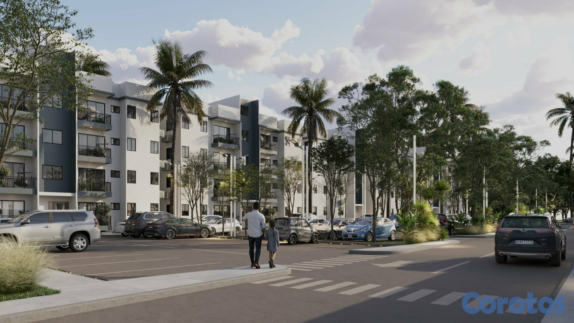 192 apartamentos distribuidos en bloque de 4 niveles, 16 por edificio, 4 por piso con espaciones pensandos para maximizar comodidad y fucionalidad.