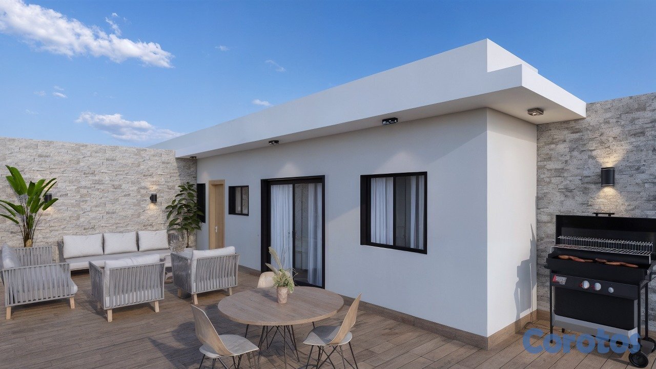 Terraza semi techada de aprox. 55 m², completamente amueblada.
