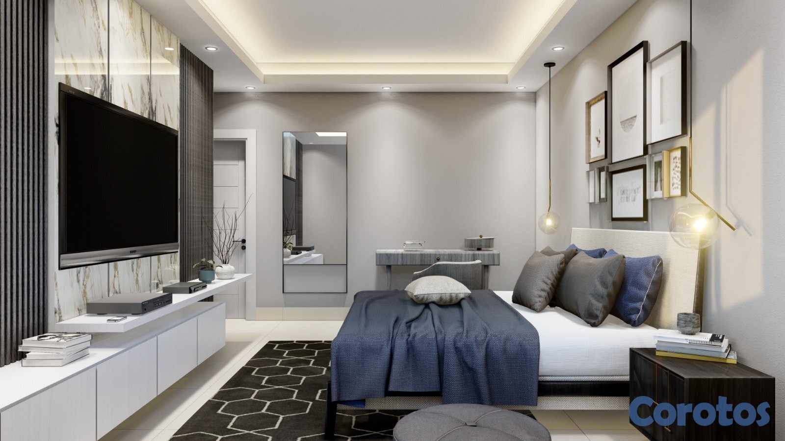 Techos de áreas sociales y habitación principal con fascias de iluminación.