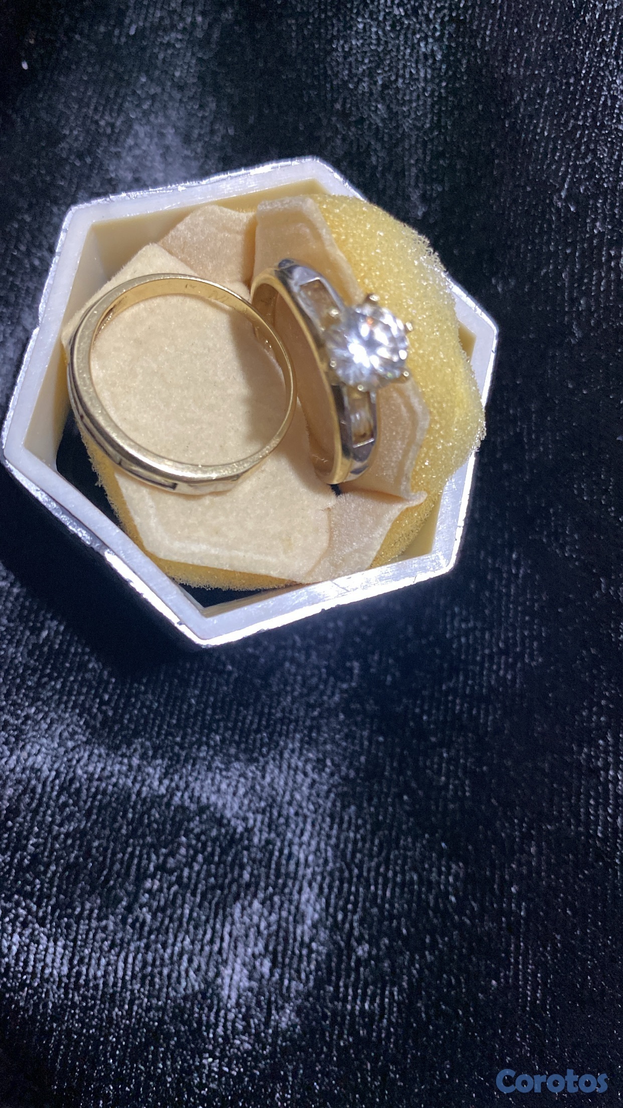 anillos de boda 14K, aro y compromiso están como nuevo, son #7,