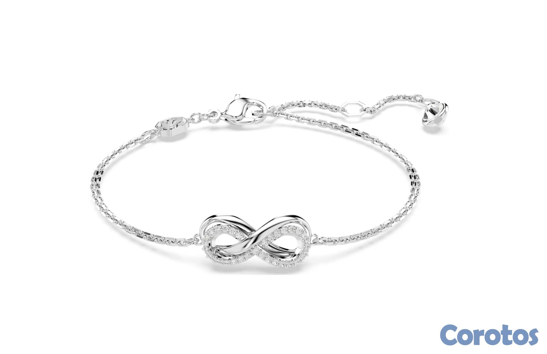 Esta delicada pulsera, cargada de significado simbólico, realzará cualquier conjunto. El diseño, chapado en rodio, presenta una suave cadena con un motivo de infinito, adornada con un pavé de cristales transparentes. Además, en la prolongación se ha colocado una única circonita de Swarovski para aportar un toque extra de lujo. Luce esta pieza para añadir un toque de lujo discreto a tu estilo.