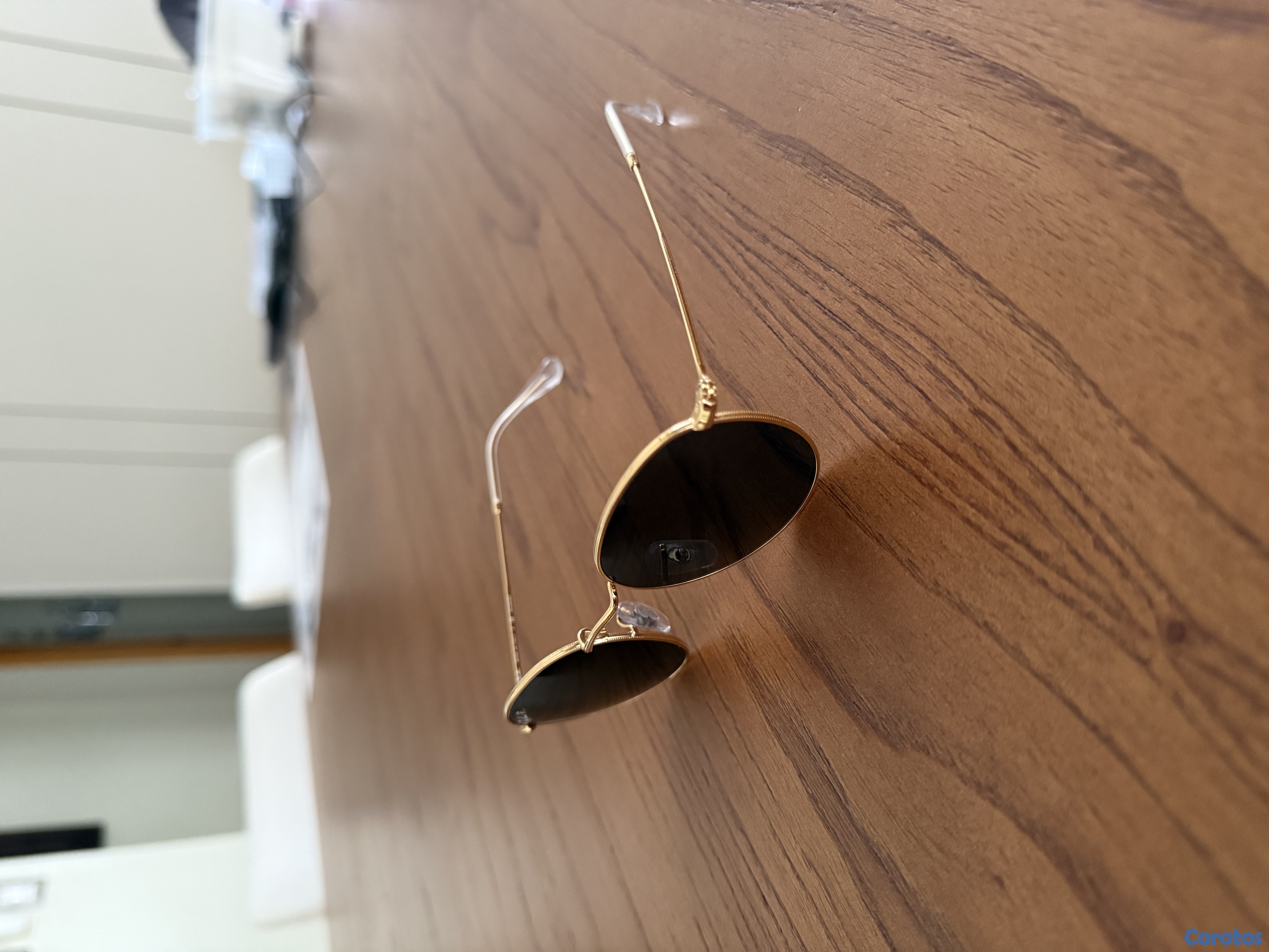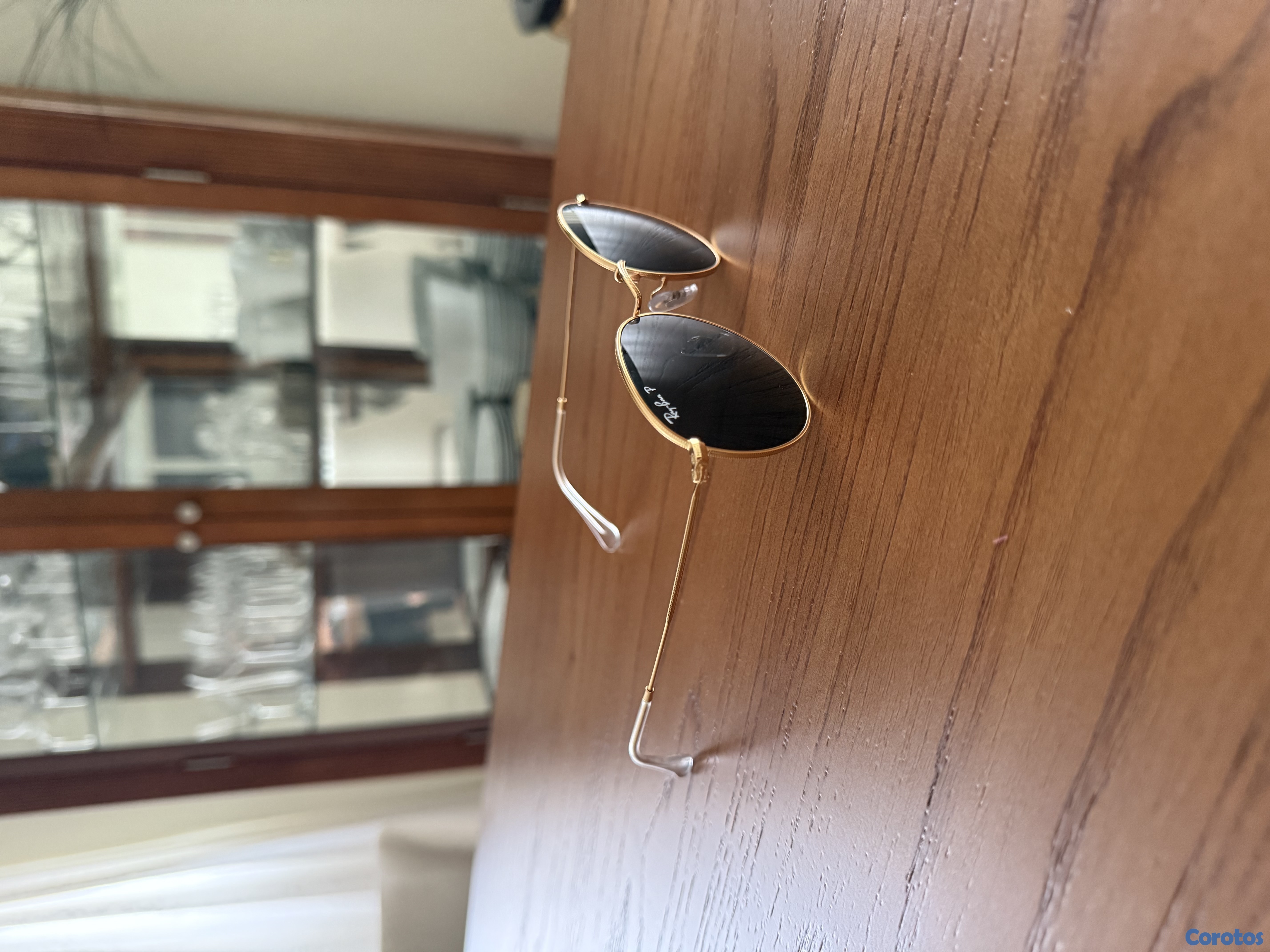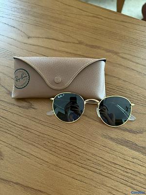 Lentes Ray-Ban Rb3447 Round Metal. Talla: 50.21 con moldura dorada y cristales polarizados.