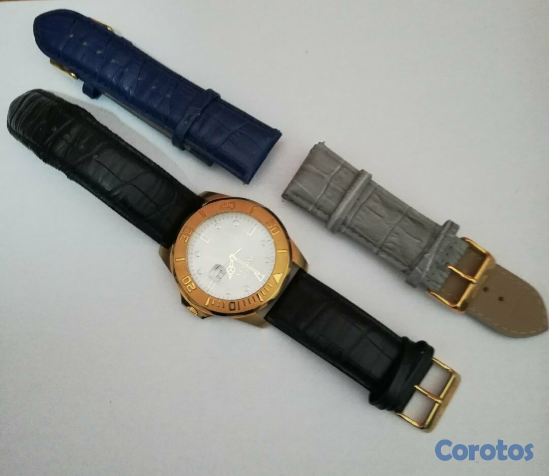 Correas intercambiables en piel, negra, azul y gris