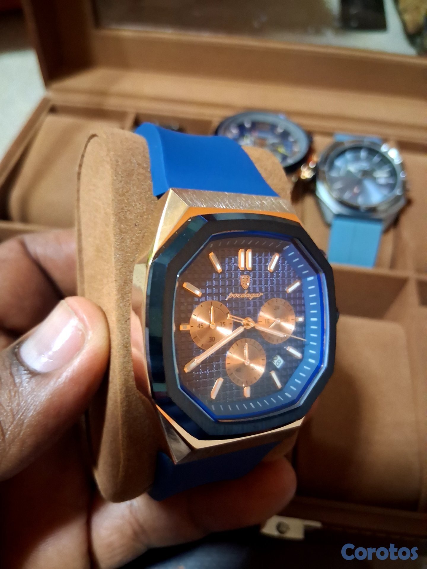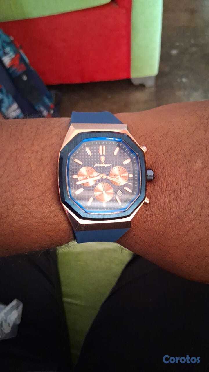 Hermoso reloj poedagar, nuevo, pulsera de silicon, cronógrafo.