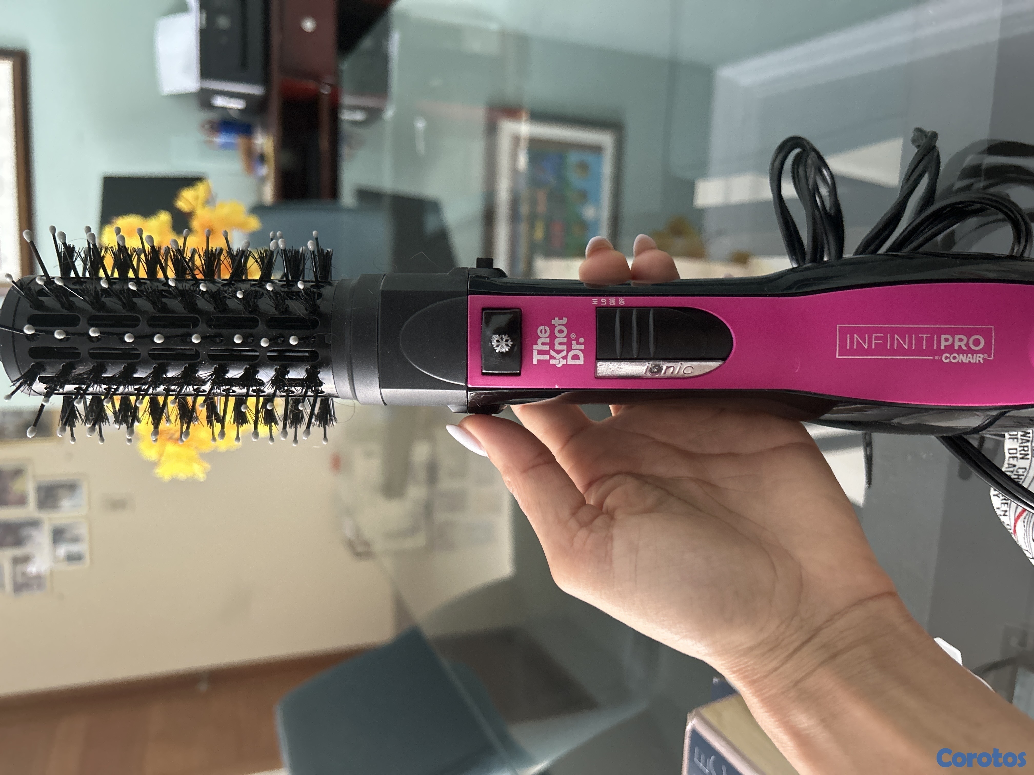 es un cepillo electrico para secar el pelo, se le cambian las boquillas, trae dos boquillas, puede verlas en las imagenes. tiene 3 velocidades de secado.