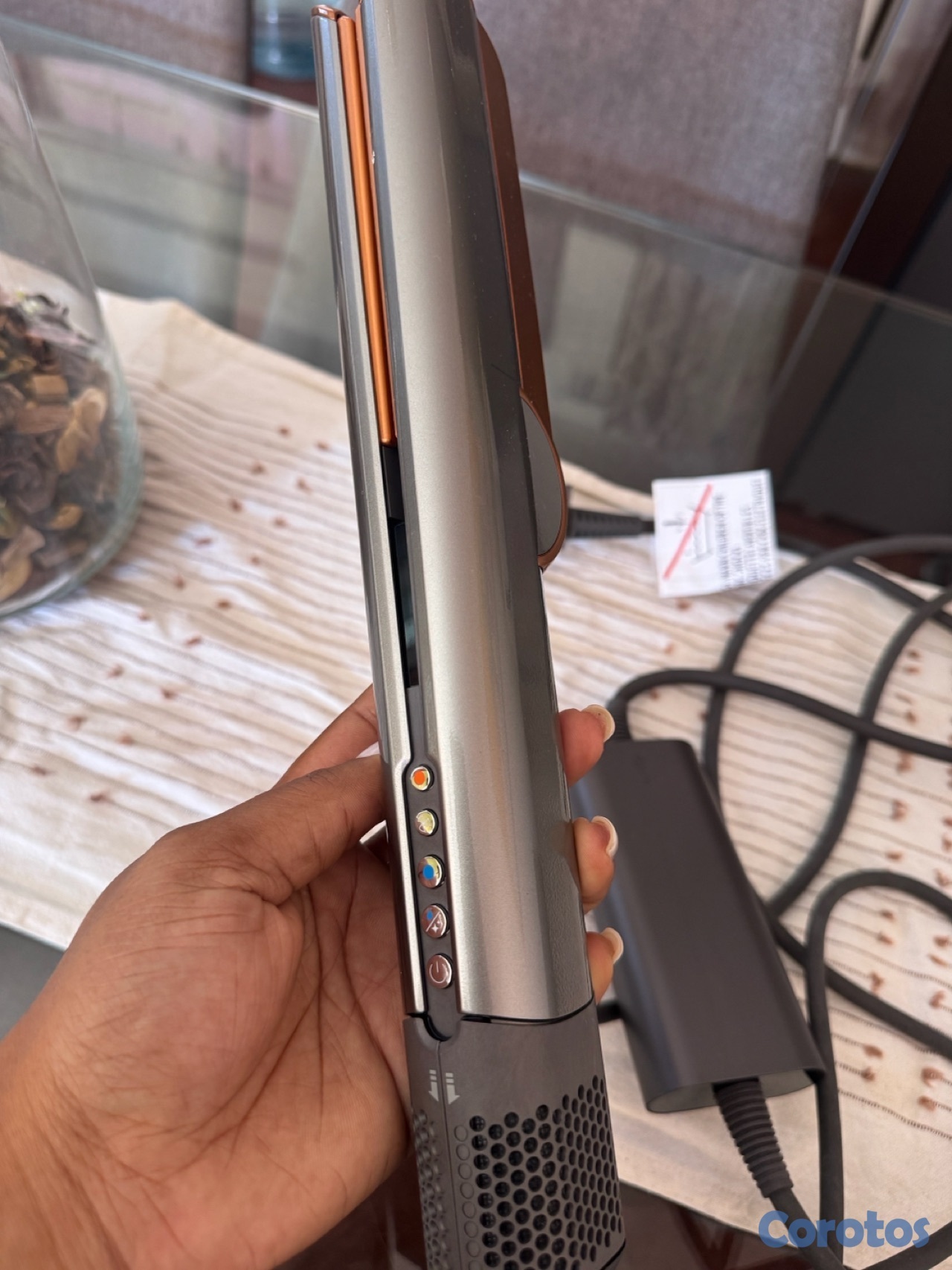 El motor Hyperdymium de Dyson tiene un impulsor de 13 cuchillas que gira hasta 106.000 rpm, propulsando 11,9 litros de aire a través de la máquina por segundo. Esto genera 3.6 kPa de presión de aire, lo suficientemente potente como para alisar el cabello mientras se seca.