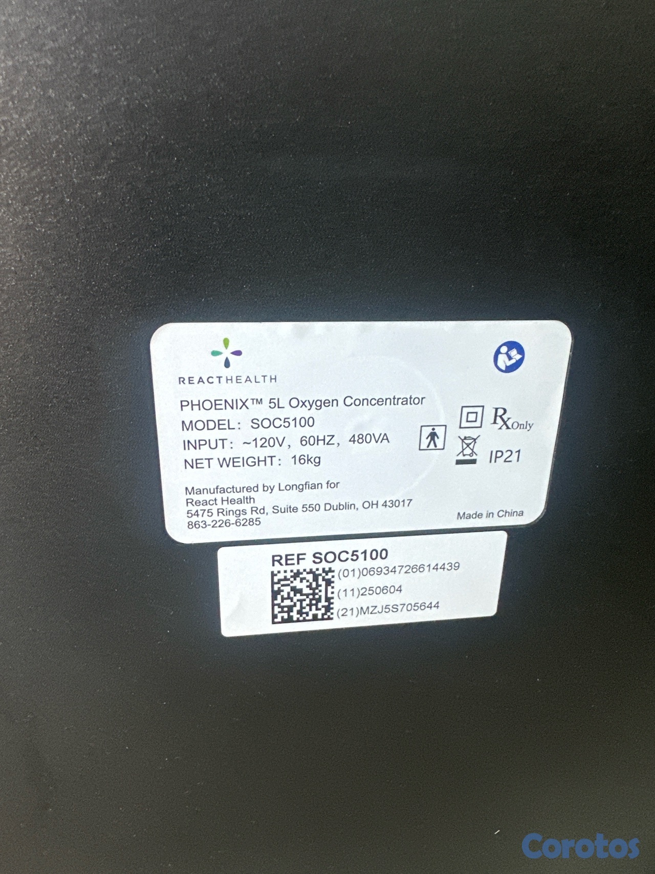 concentrador de oxígeno reacthelth nuevo