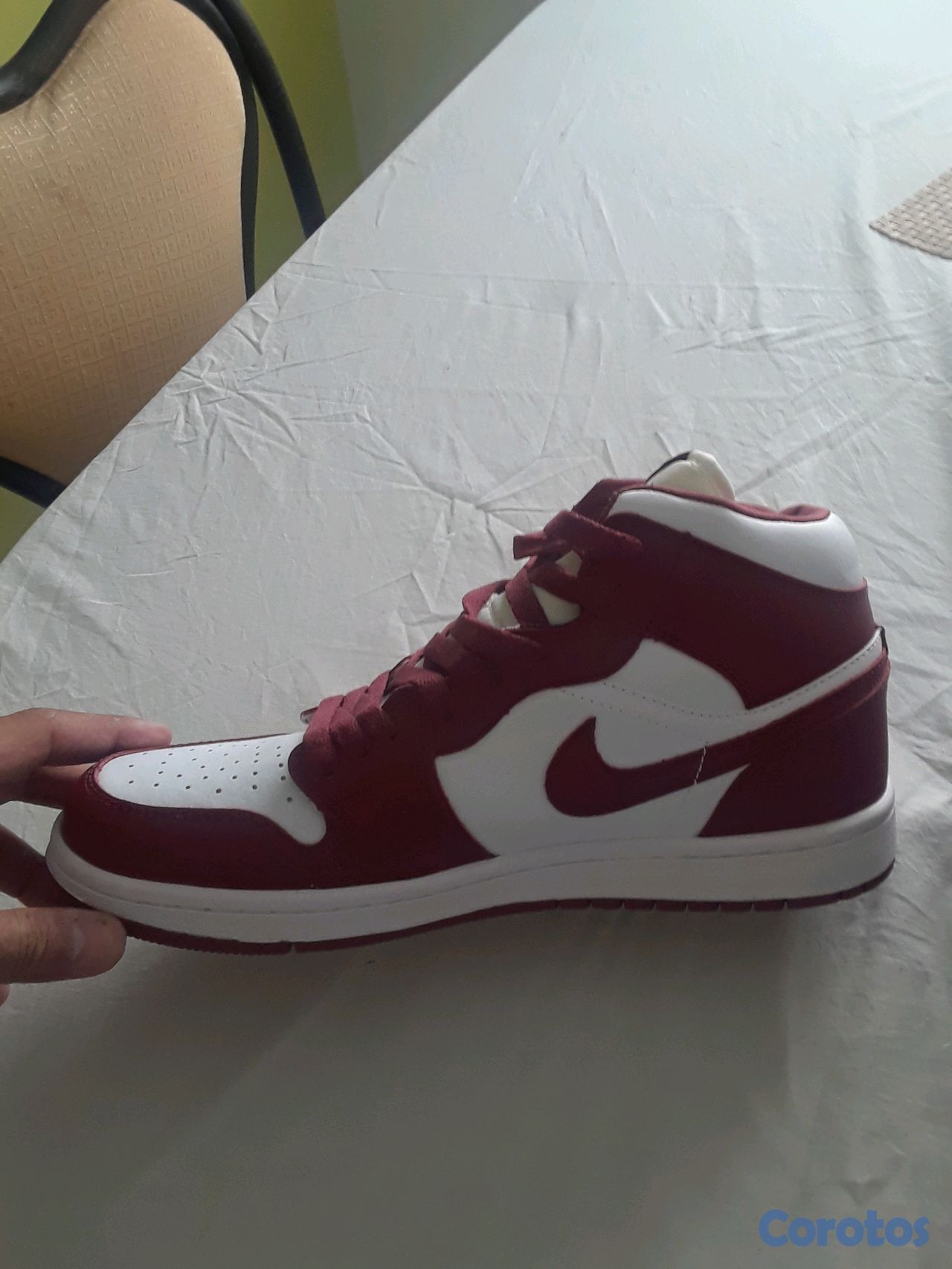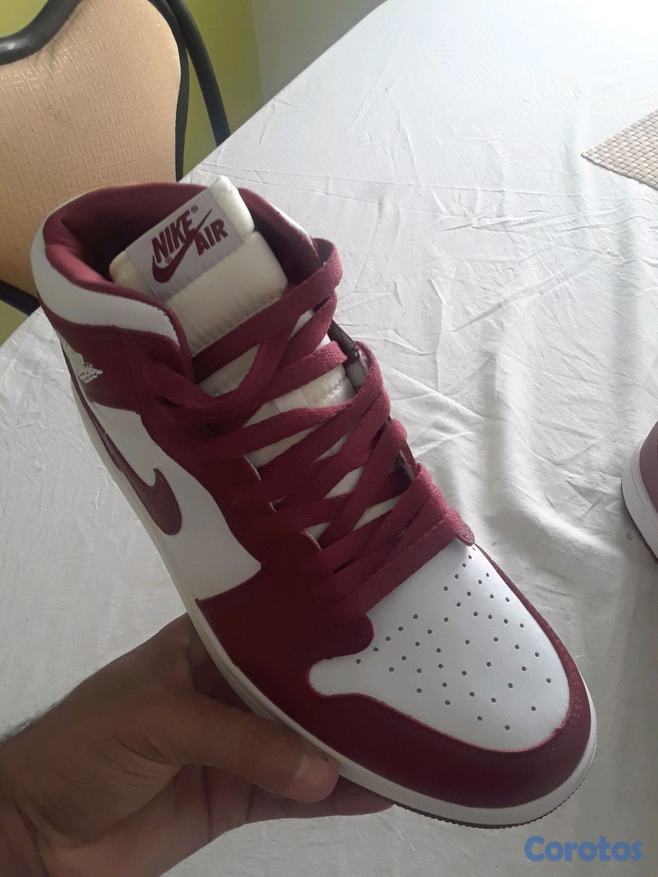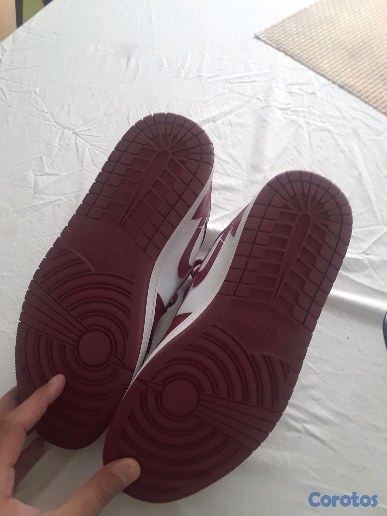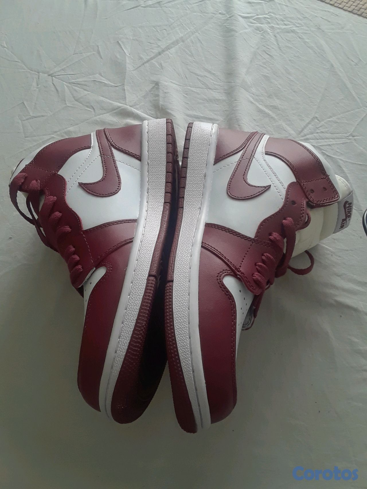 Los Air Jordan 1 nuevo de caja # 9.5 color blanco con rojo vino