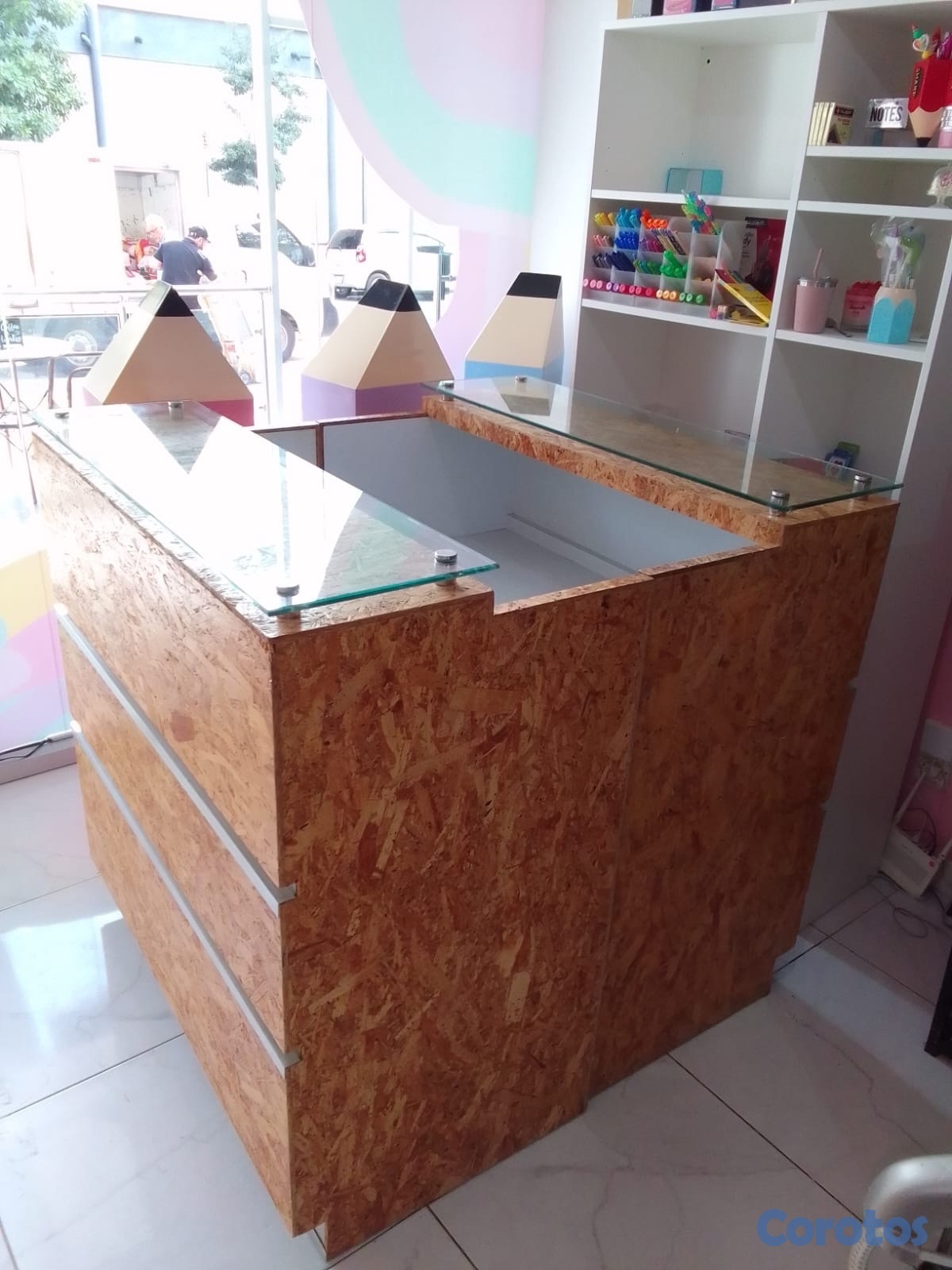 • Altura: 120 cm (cuerpo OSB) + cristal superior
