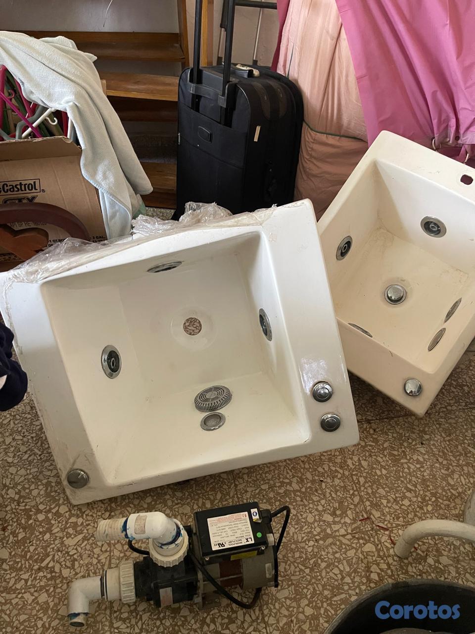 Par de Jacuzzi para lavado de pies, ambos funcionan con el mismo motor (incluído) y tienen luces integradas.