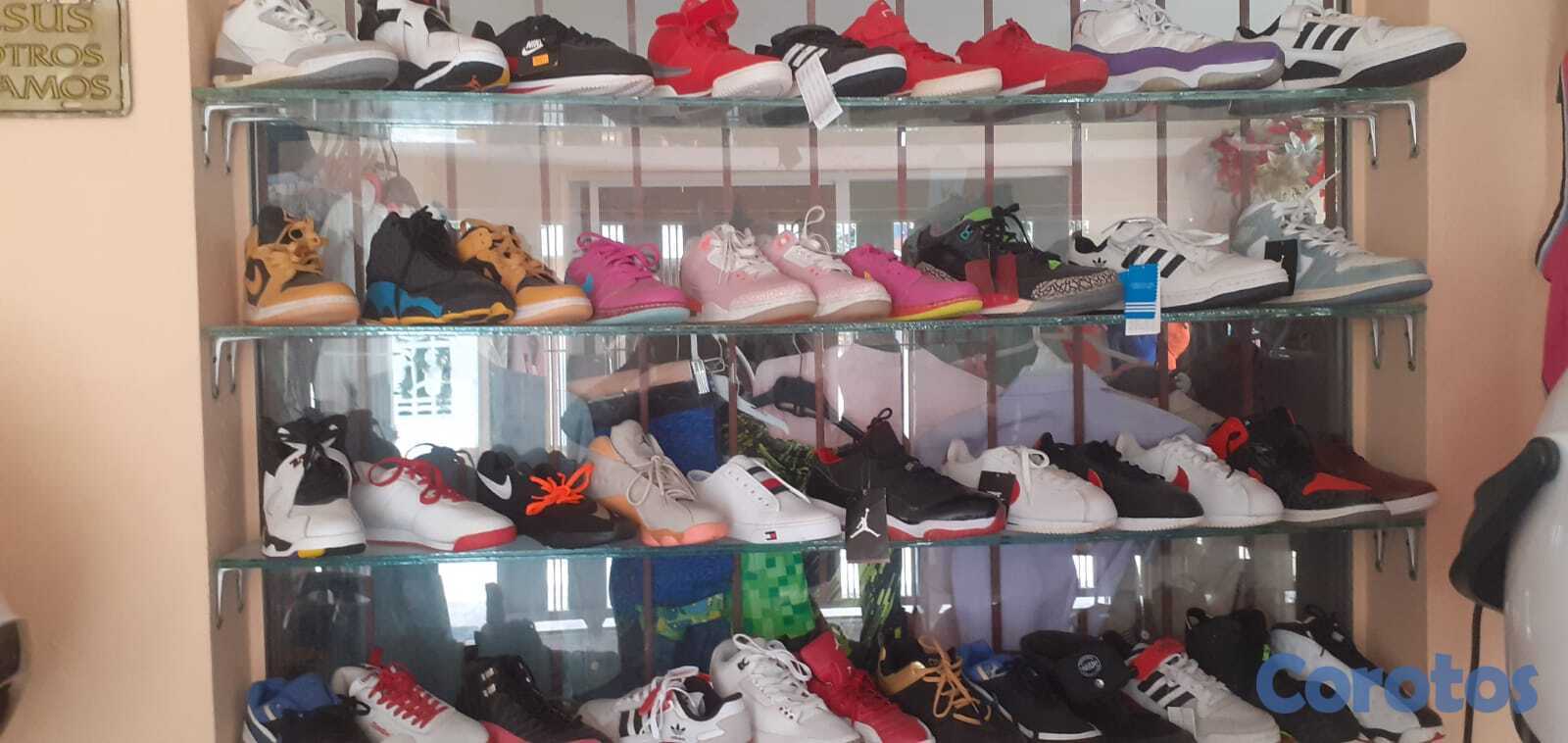 La tienda boutique posee: 4 vitrinas elegantes surtidas con perfumes, ropas interiores, gorras, carteras, franelas, relojes, prendas, accesorios. Tiene 18 maniquies modernos y muchas ropas de marcas nuevas y usadas. Tiene muchos tenis de marcas, exhibidores de gorras y de ropas, estantes y en general muchas mercancías de venta.
