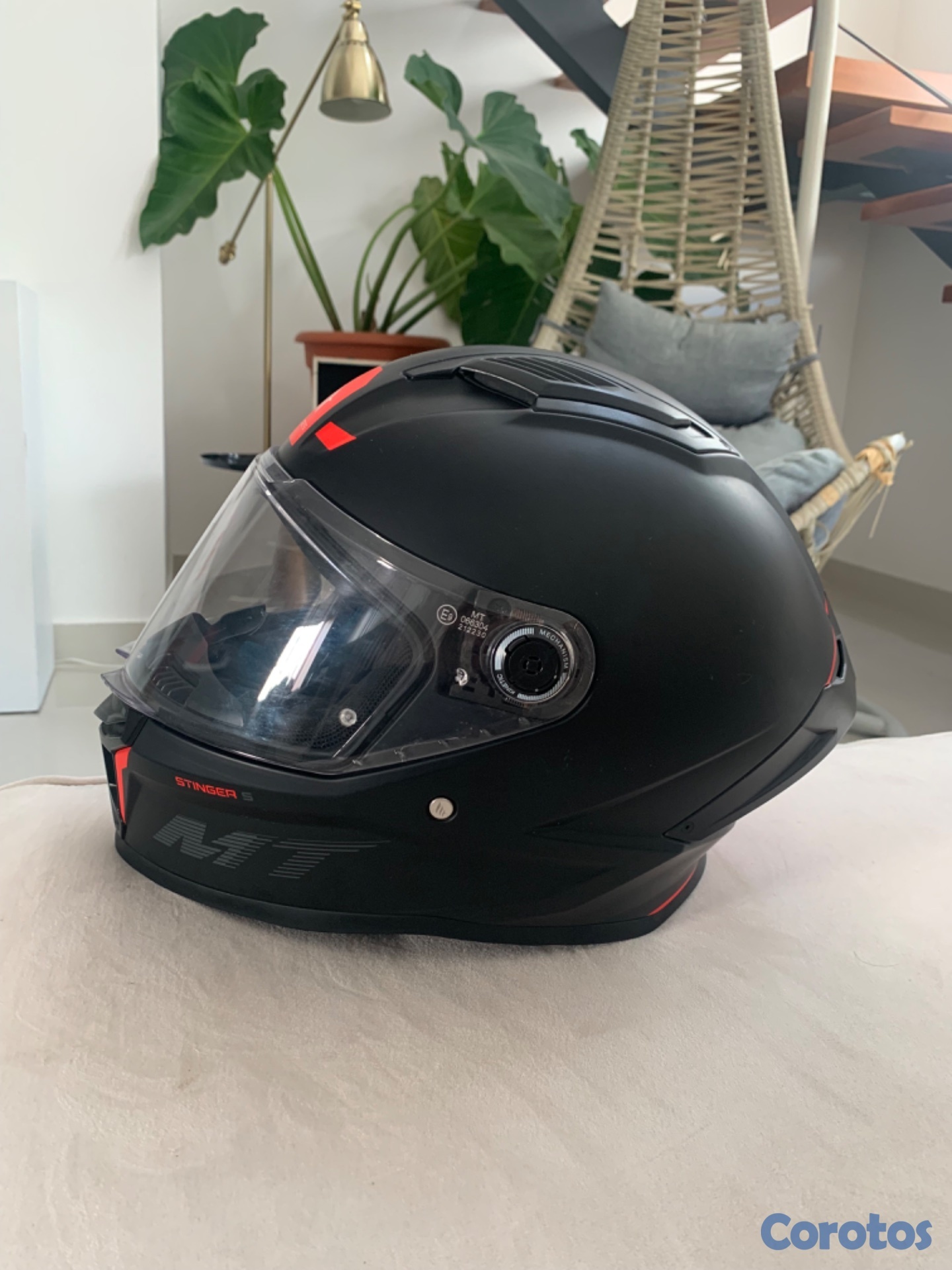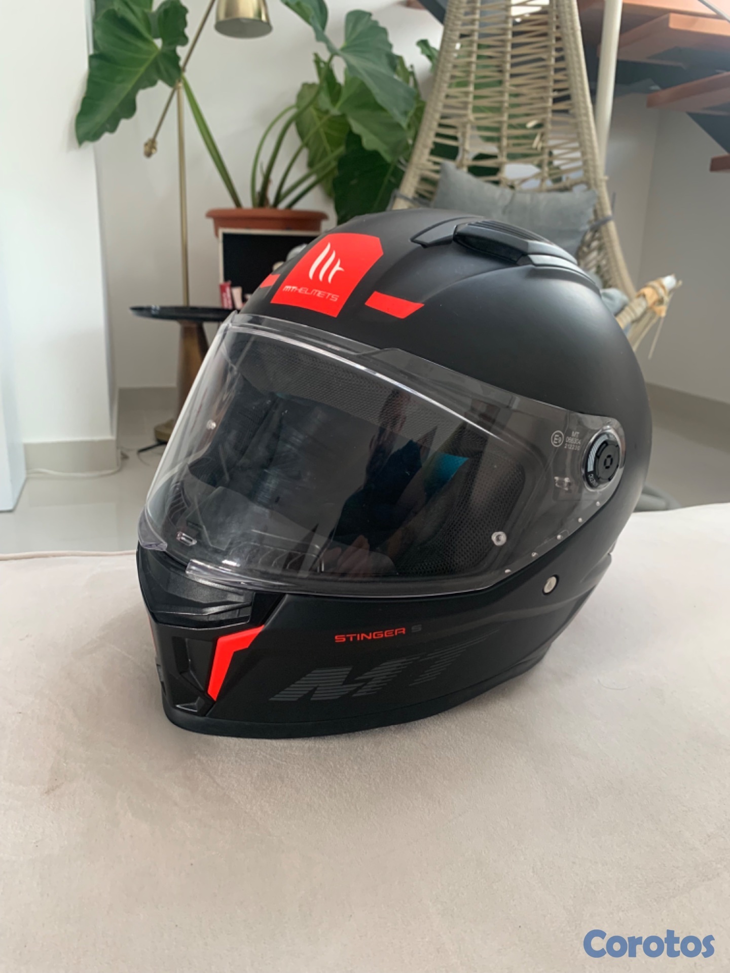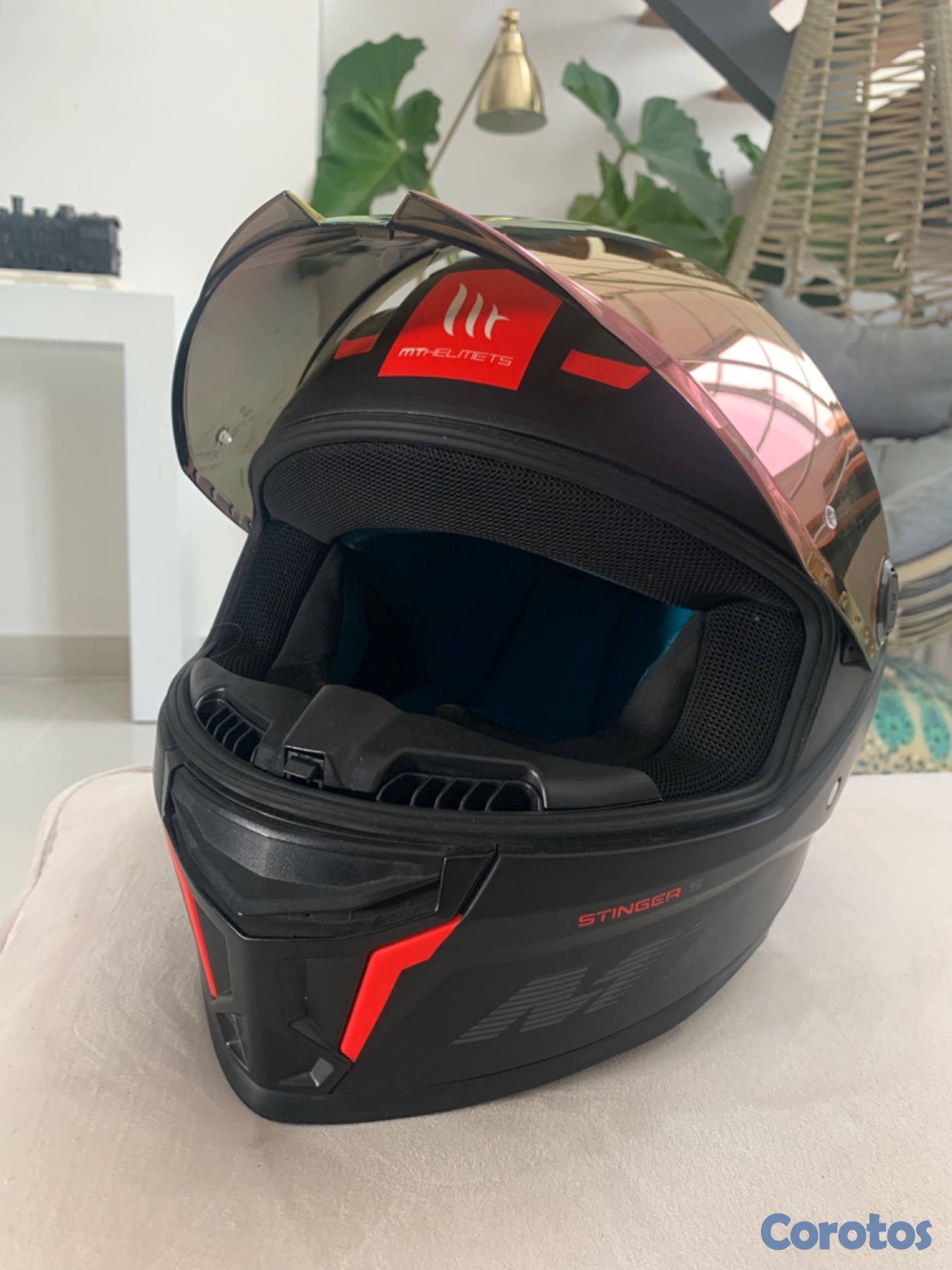 Casco MT Stinger 2 S, con dos viseras. La visera tornasol tiene algunos rayones, pero la transparente nunca se ha usado. El casco se utilizó por 3 meses, el interior es extraíble y lavable. Viene con 4 entradas y salidas de aire y es muy aerodinámico y cómodo. Tiene certificación DOT. Lo puedes usar para moto de alto cilindraje. Con las dos viseras me costó RD$ 12.500. Hay muchas más viseras que se pueden combinar y se cambian en 5 segundos. No es negociable.