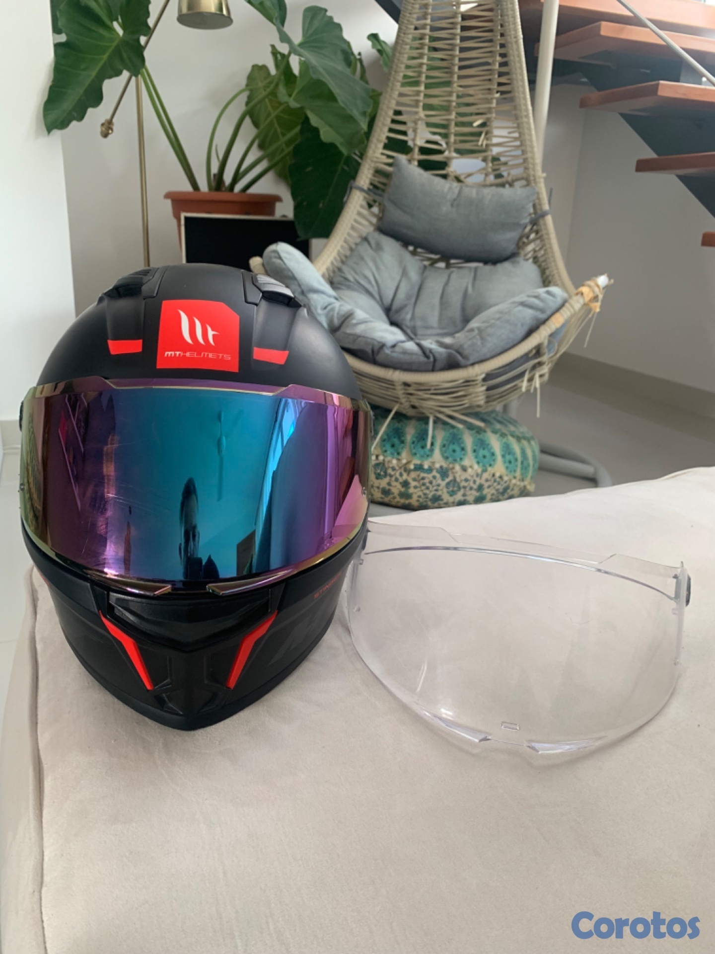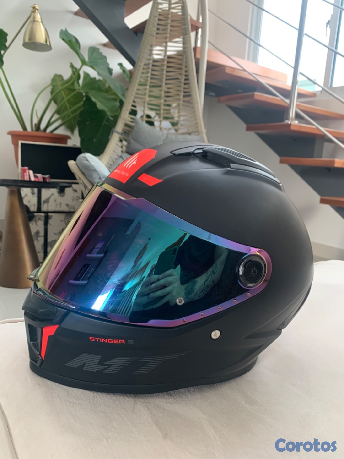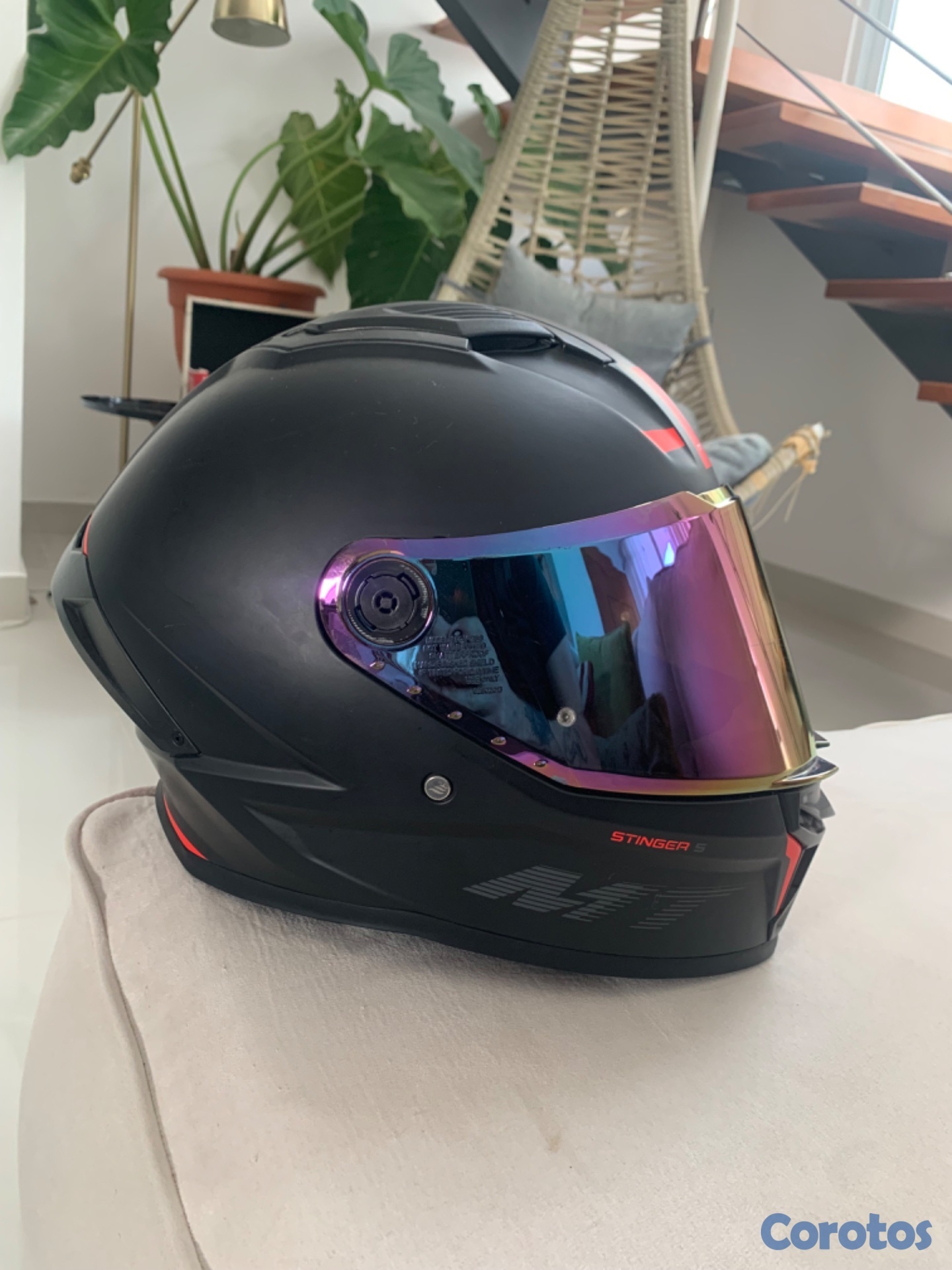 Casco MT Stinger 2 S, con dos viseras. La visera tornasol tiene algunos rayones, pero la transparente nunca se ha usado. El casco se utilizó por 3 meses, el interior es extraíble y lavable. Viene con 4 entradas y salidas de aire y es muy aerodinámico y cómodo. Tiene certificación DOT. Lo puedes usar para moto de alto cilindraje. Con las dos viseras me costó RD$ 12.500. Hay muchas más viseras que se pueden combinar y se cambian en 5 segundos. No es negociable.