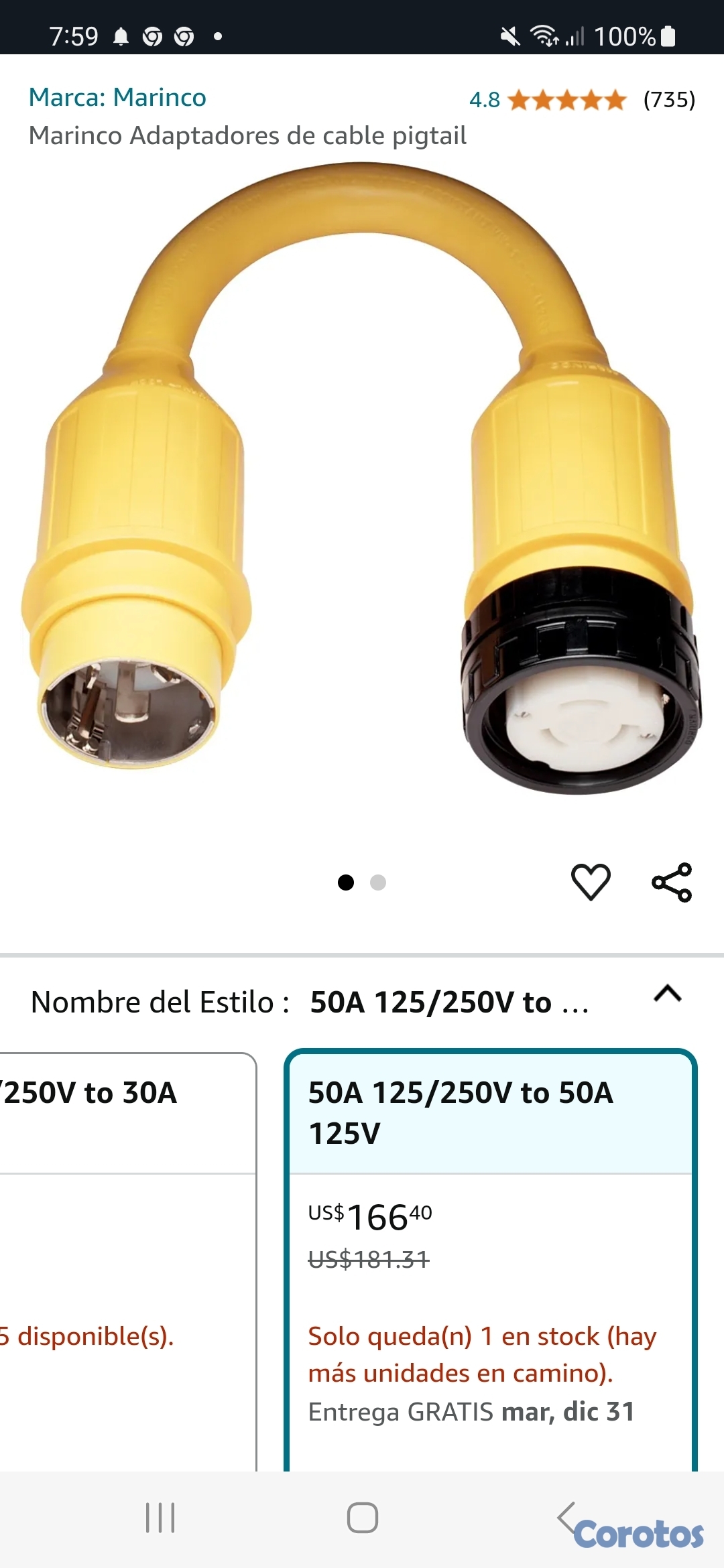 Vendo adaptador nuevo, para bote, velero o lancha.