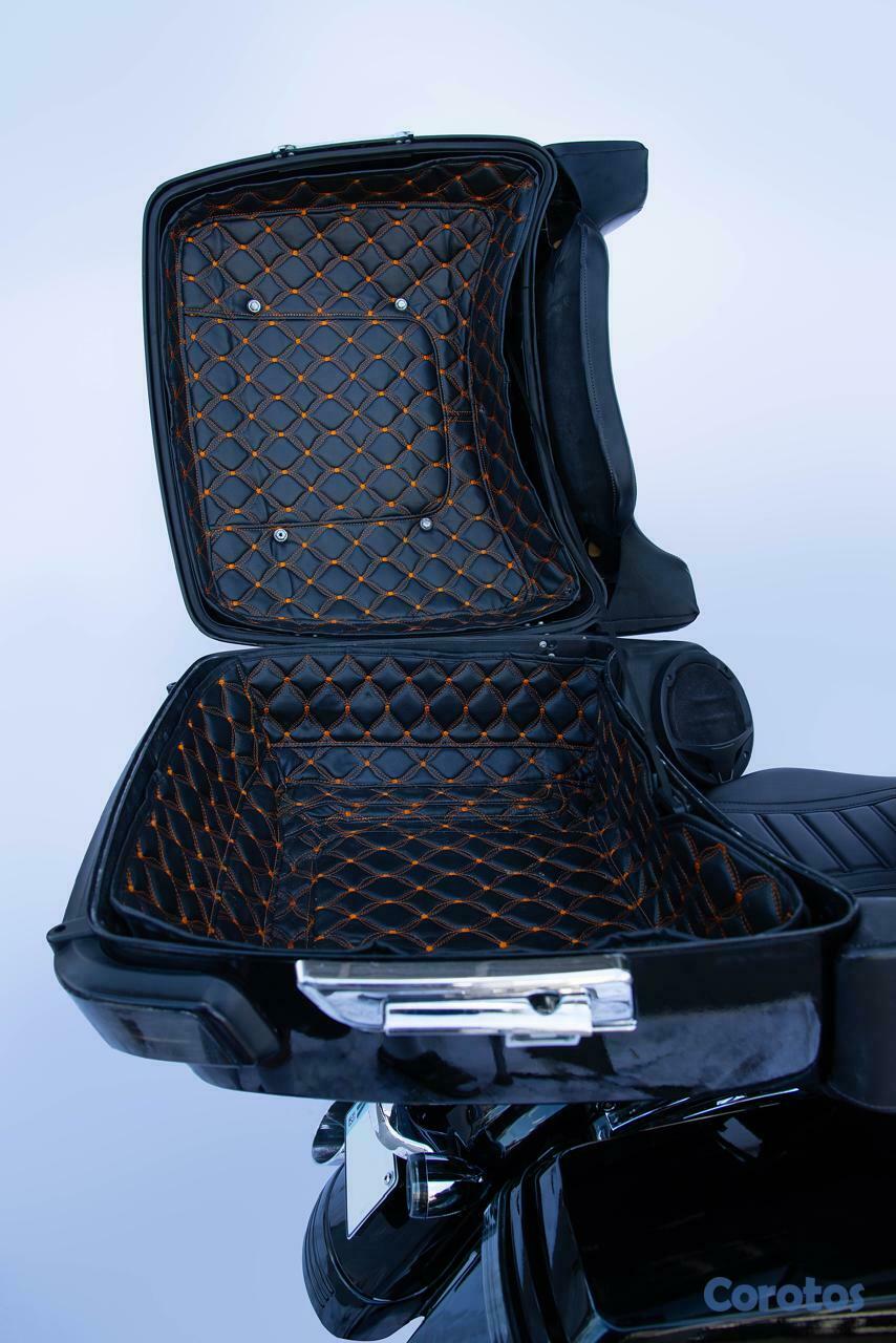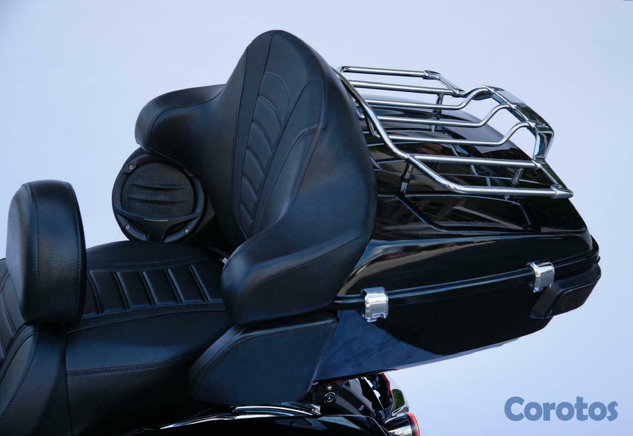 Touring pack con espaldar con apoyabrazos para el pasajero y dos bocinas adicionales marinas de 240 w, con espacio para dos cascos fullface o cualquier tipo de equipaje, más una parrilla externa para más capacidad de carga y luces adicionales para los viajes nocturnos.
